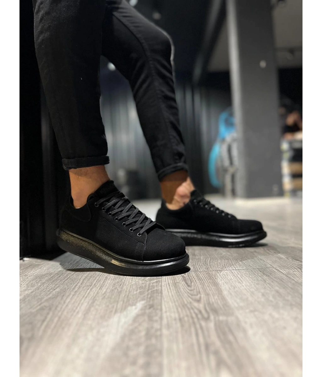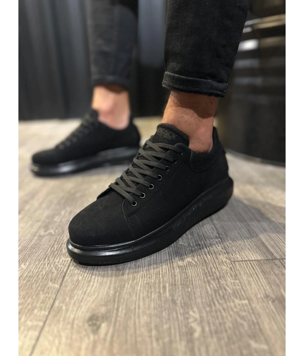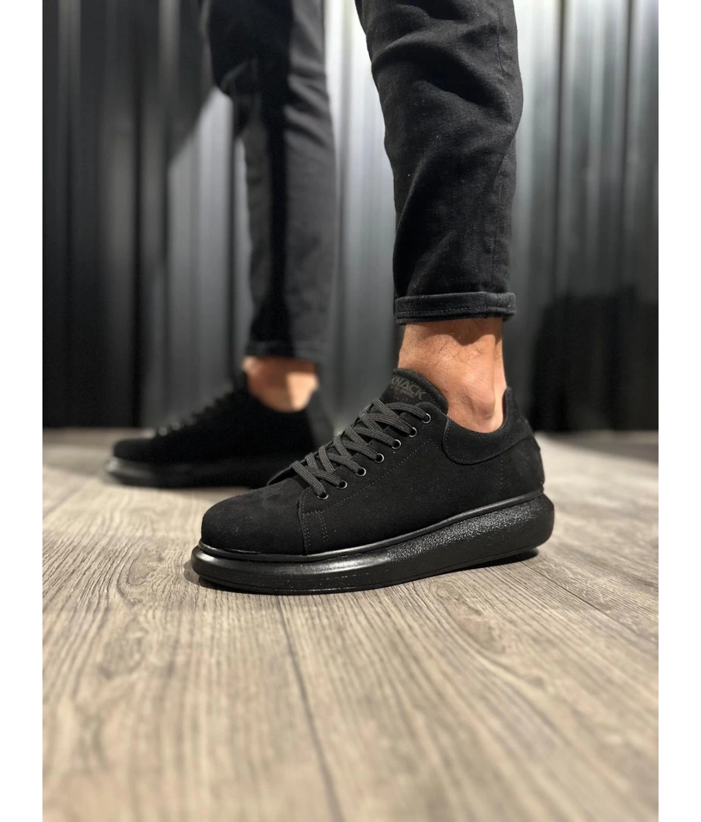 Shoecide Yüksek Taban Günlük Ayakkabı 044 Siyah Süet (siyah Taban)