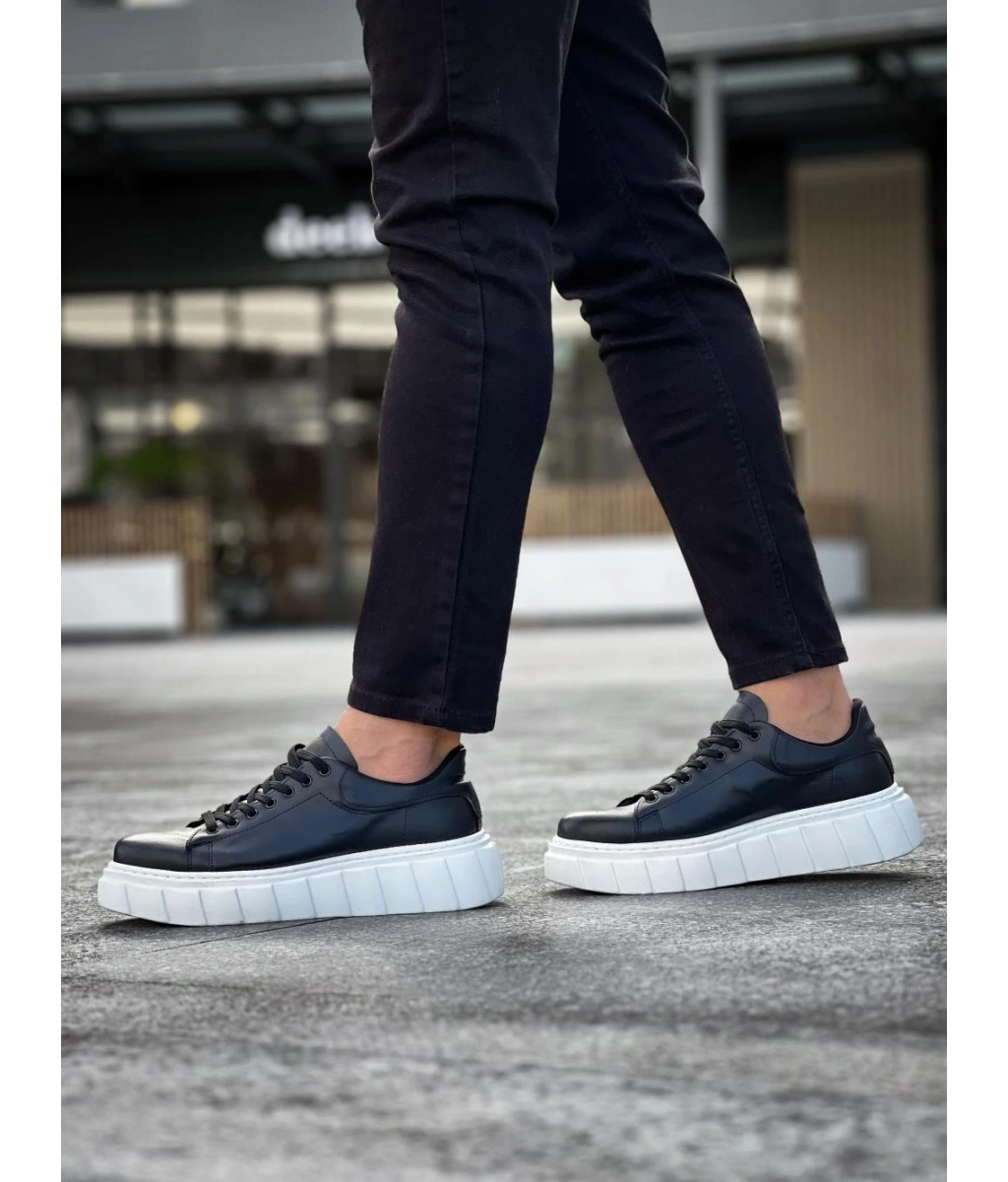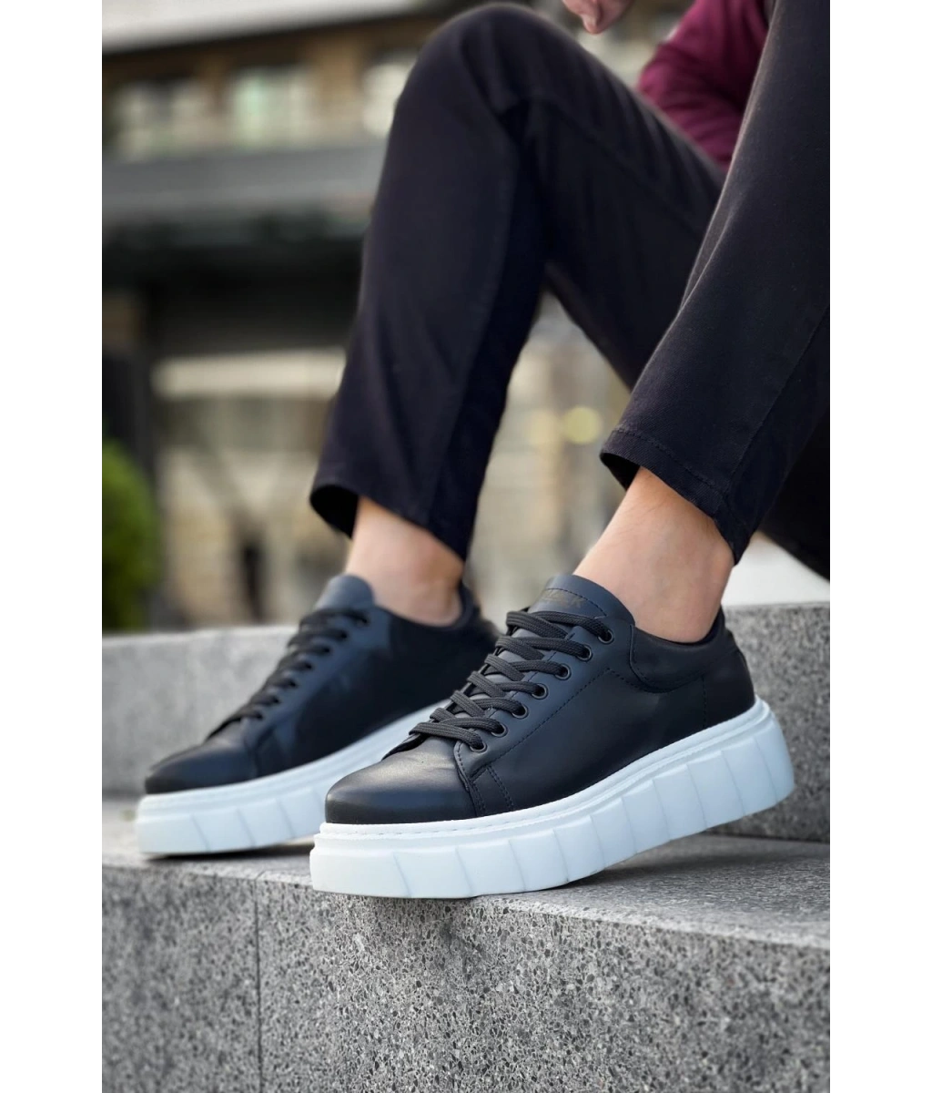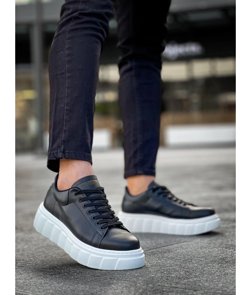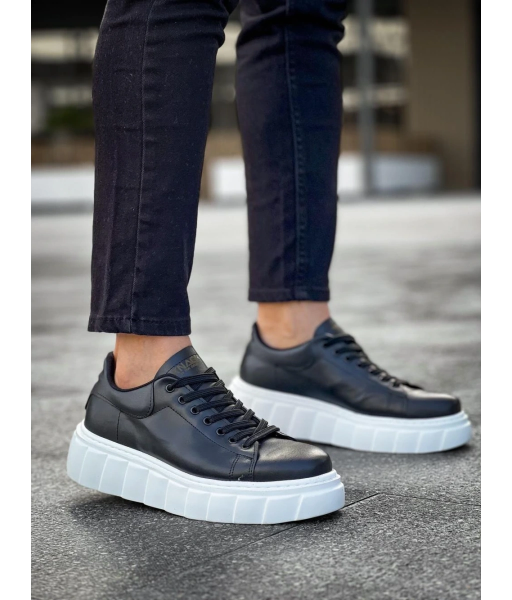 Shoecide Yüksek Taban Günlük Ayakkabı 144 Siyah (beyaz Taban)