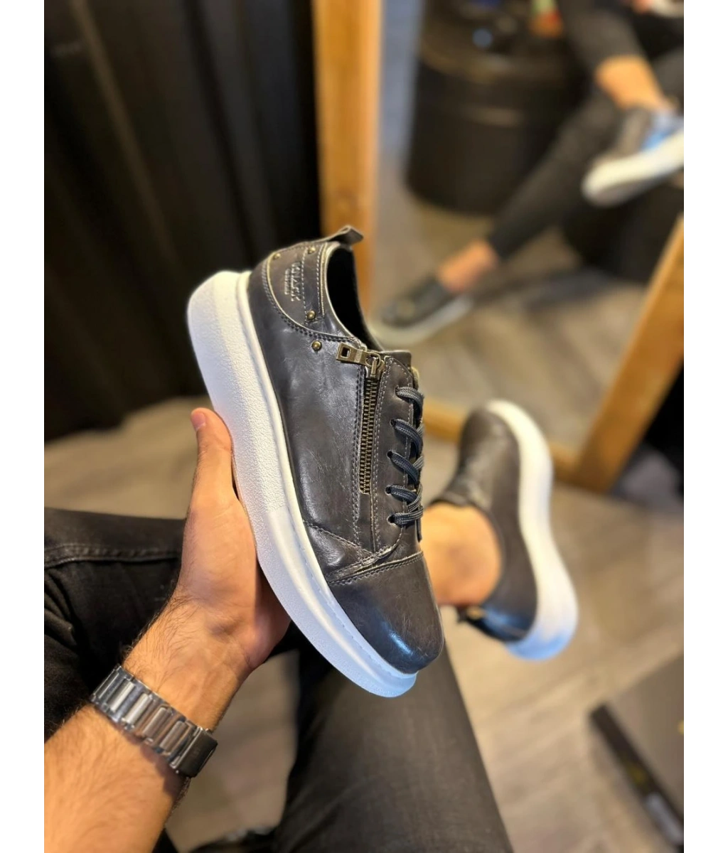 Shoecide Yüksek Taban Günlük Ayakkabı 555 Parlak Gri