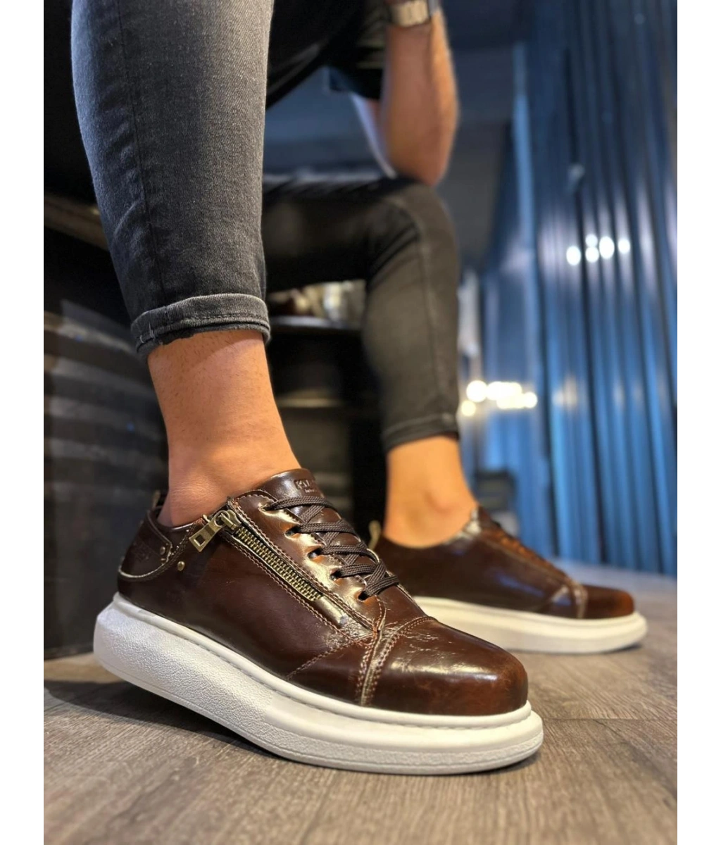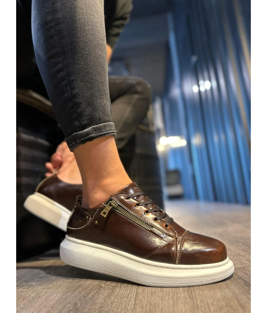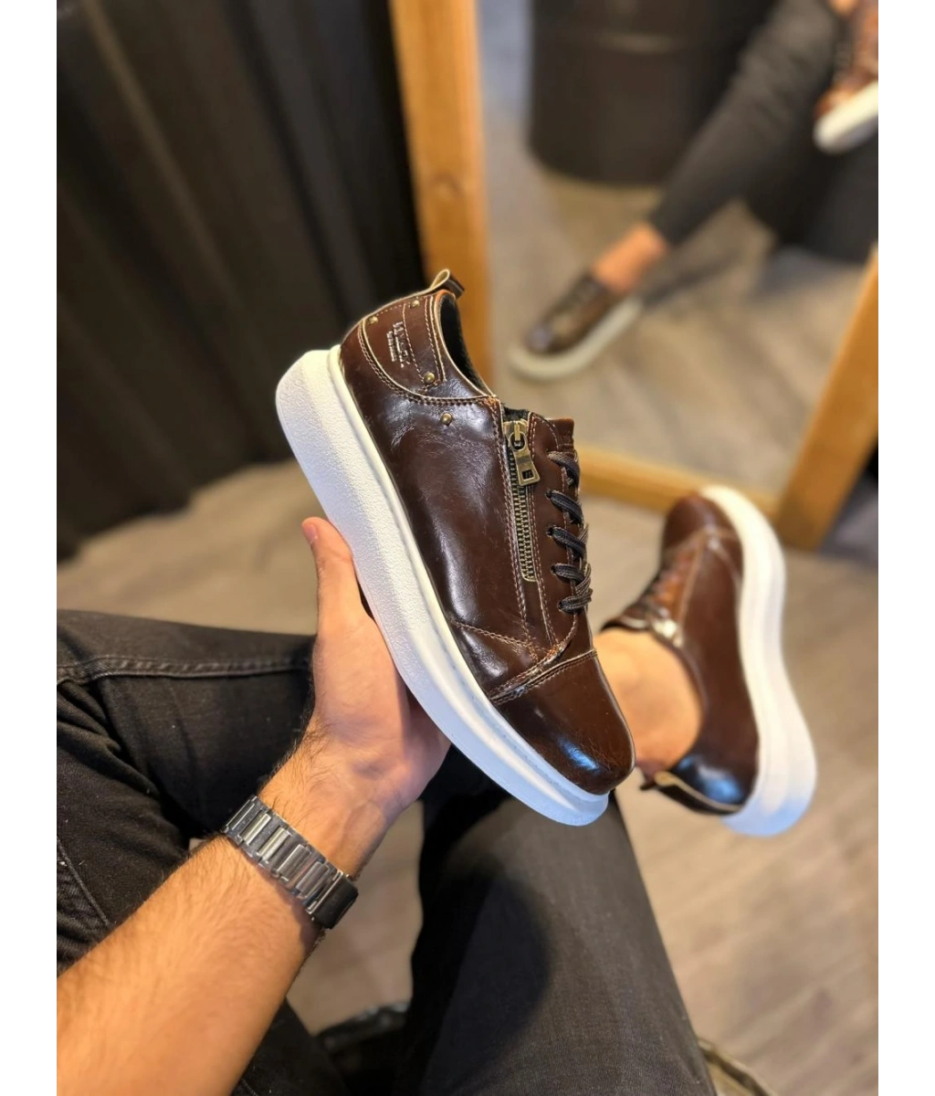 Shoecide Yüksek Taban Günlük Ayakkabı 555 Parlak Kahverengi