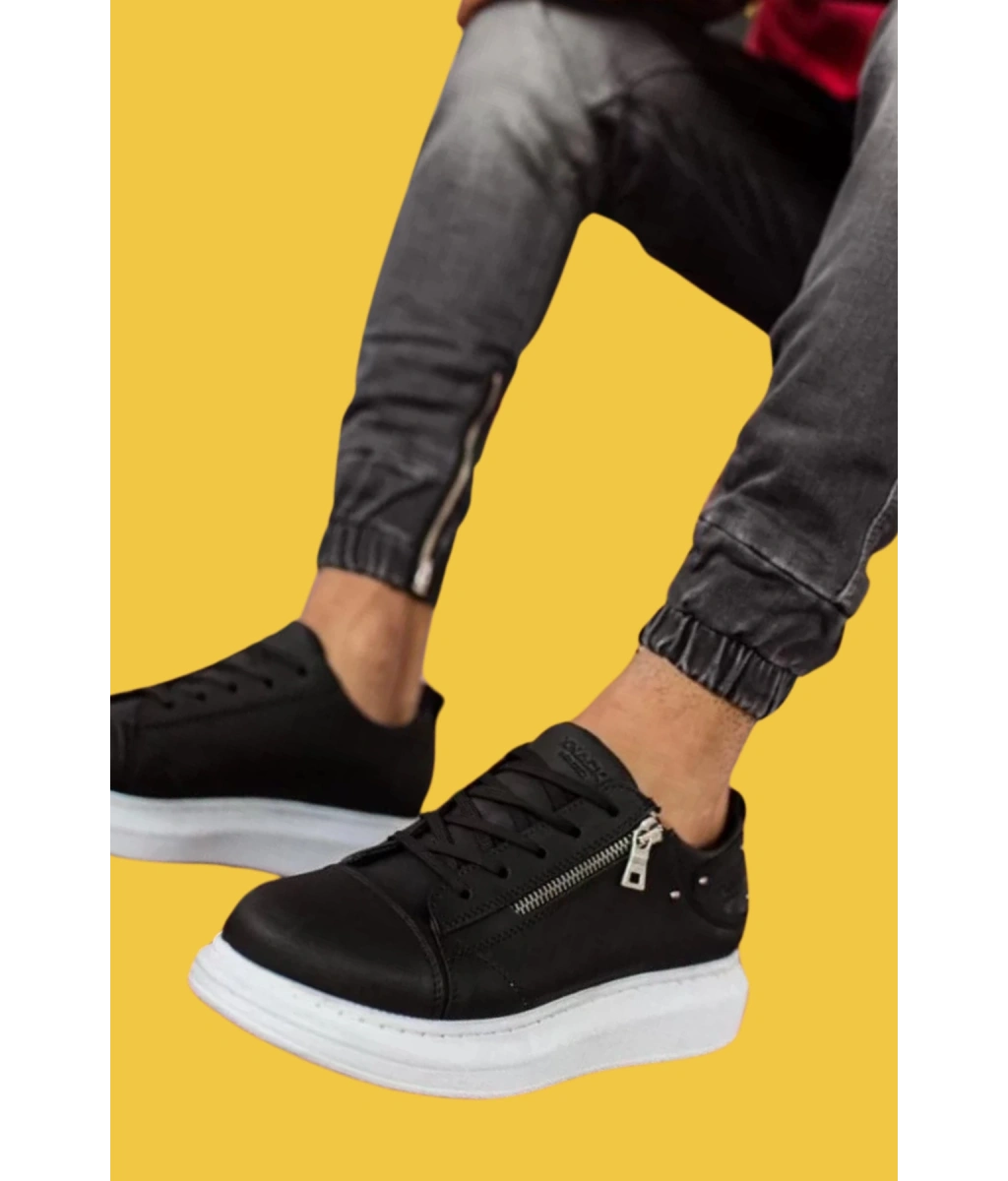 Shoecide Yüksek Taban Günlük Ayakkabı 555 Siyah (beyaz Taban)