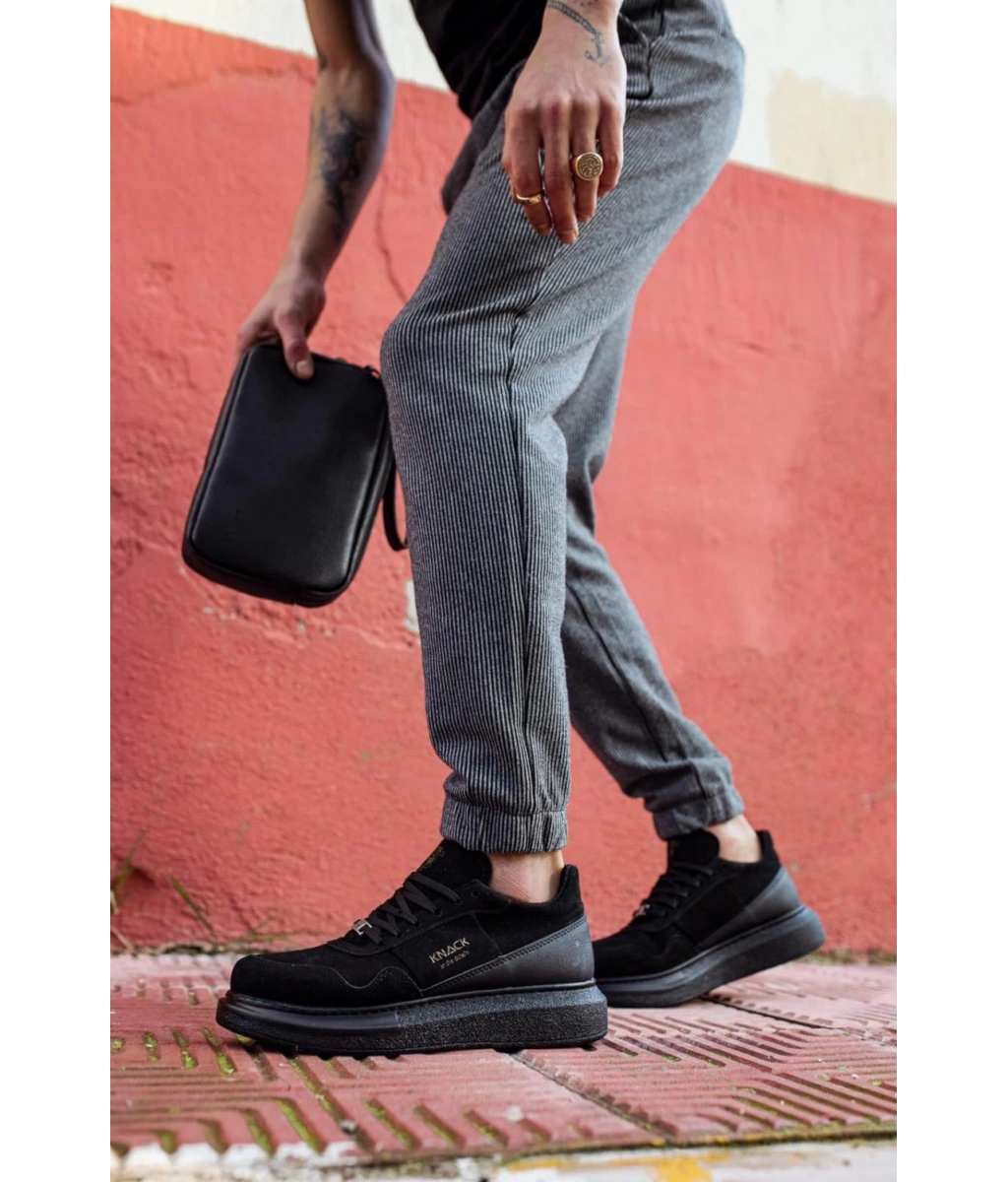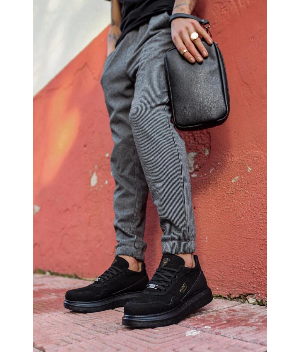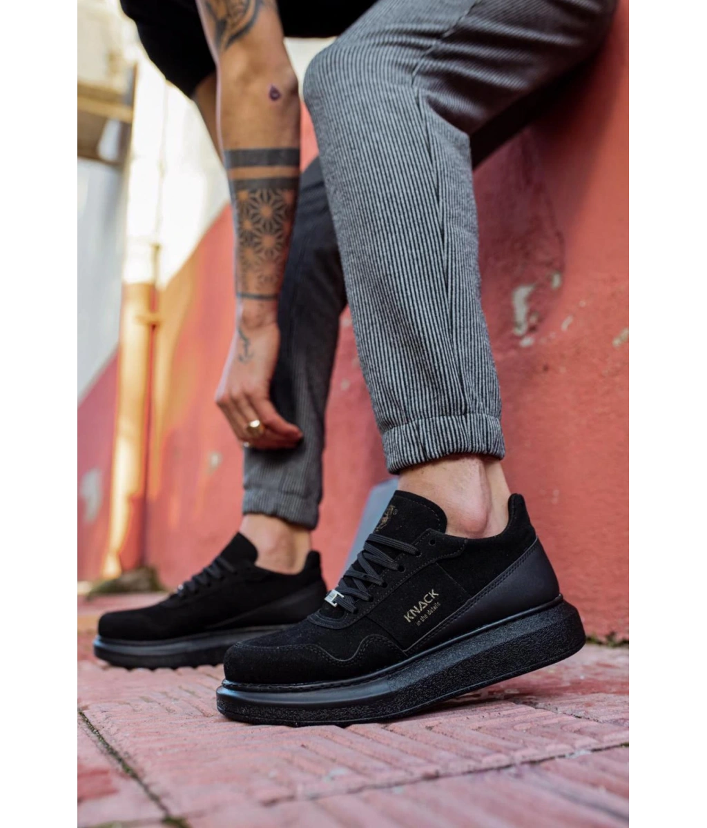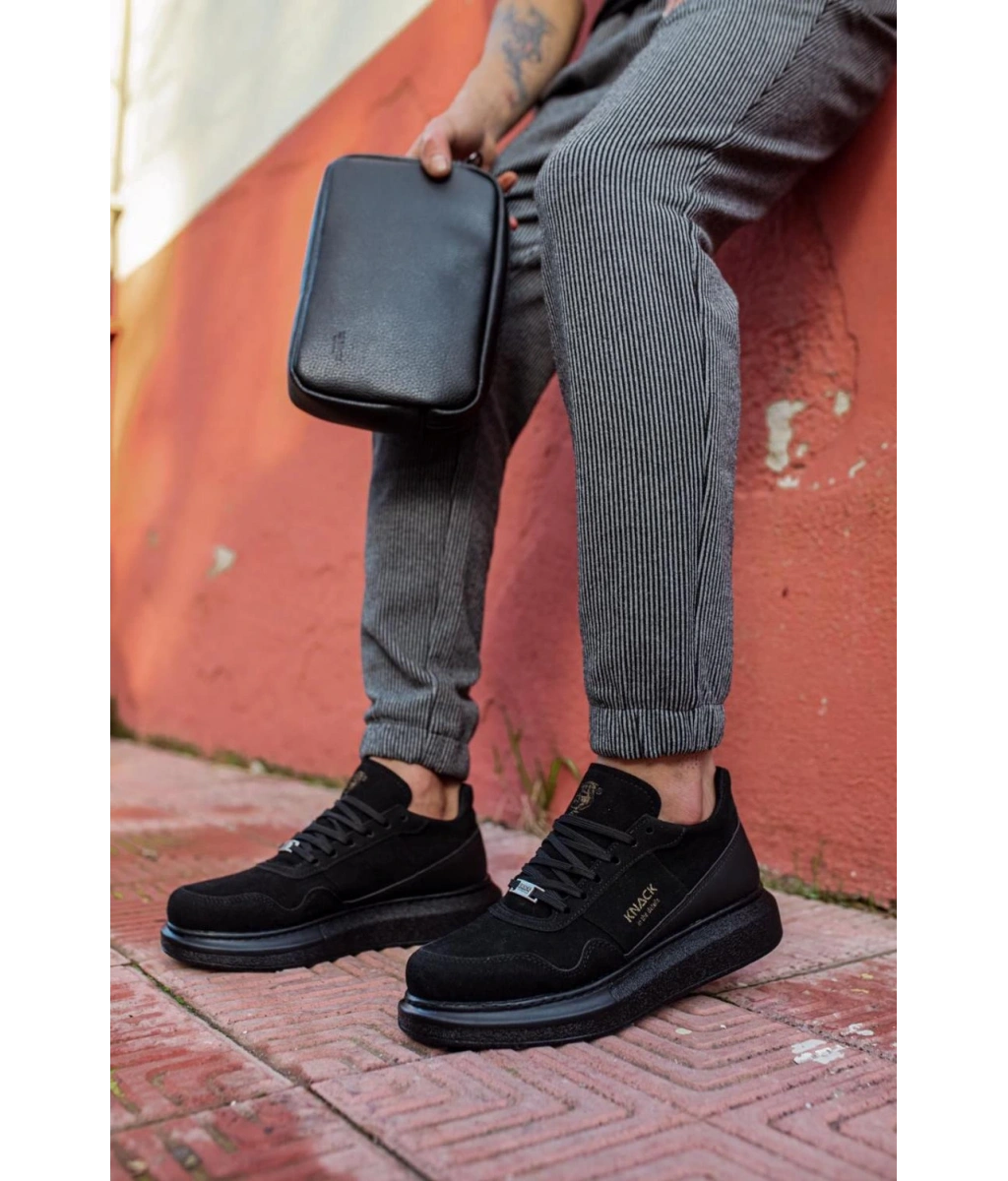 Shoecide Yüksek Taban Günlük Süet Ayakkabı 040 Siyah (siyah Taban)