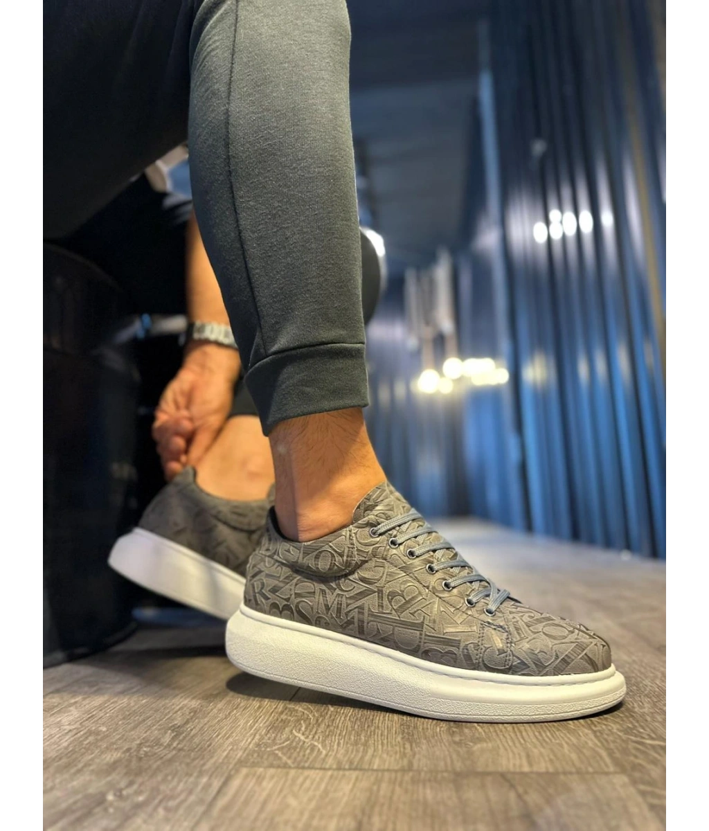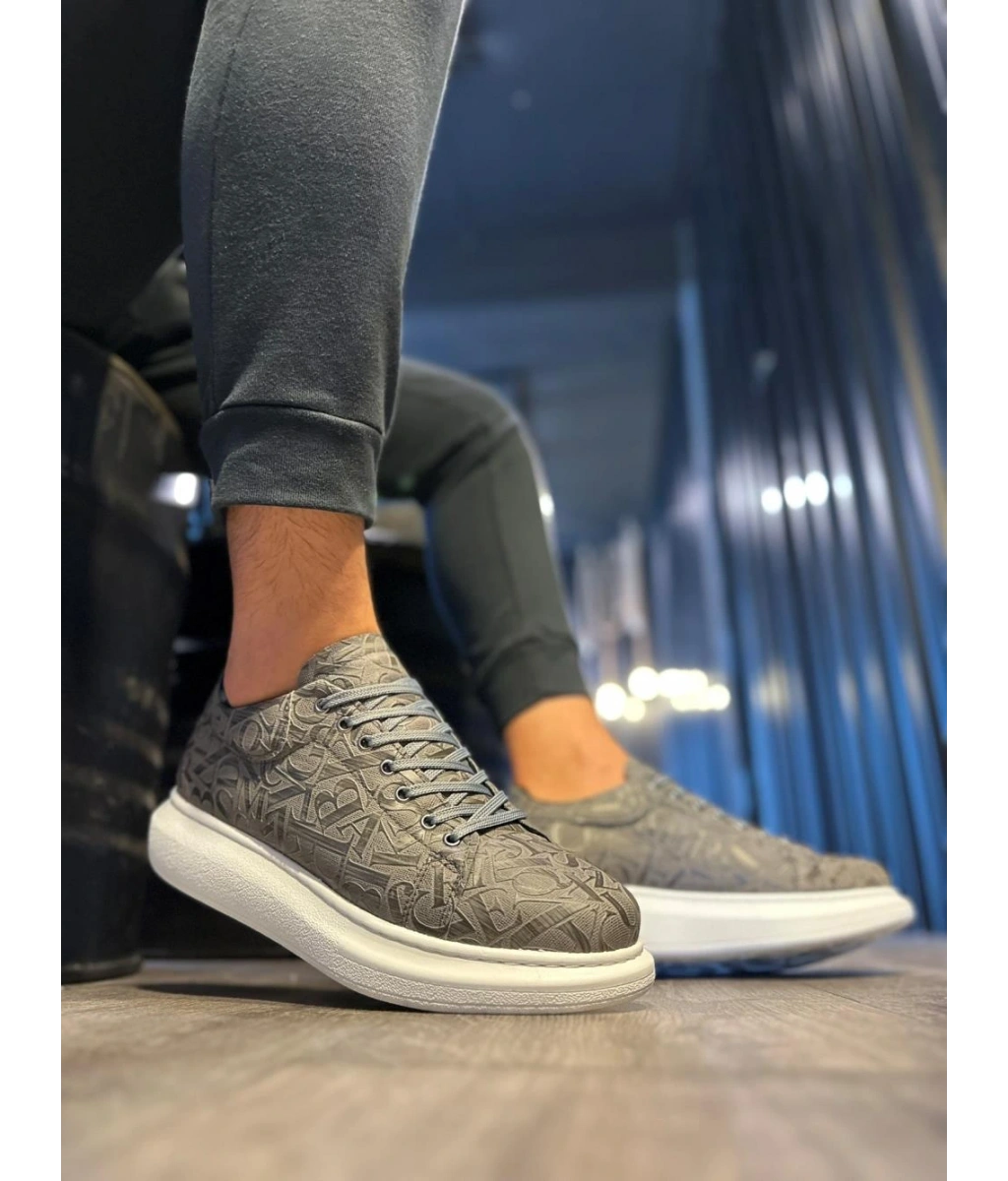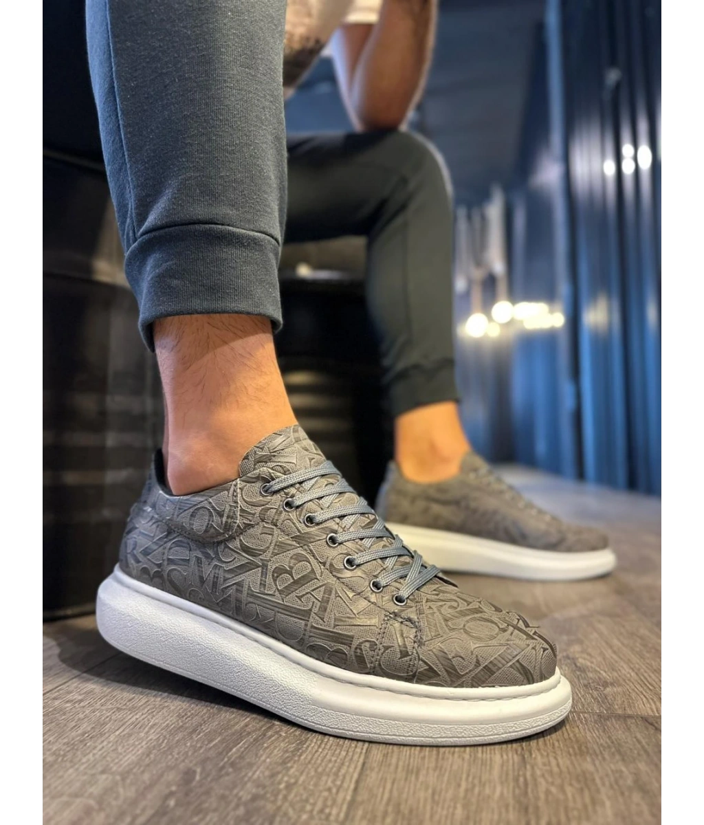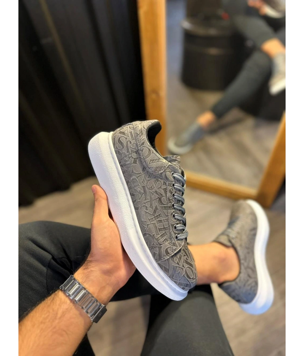 Shoecide Yüksek Taban Harf Desenli Günlük Ayakkabı 047 Gri