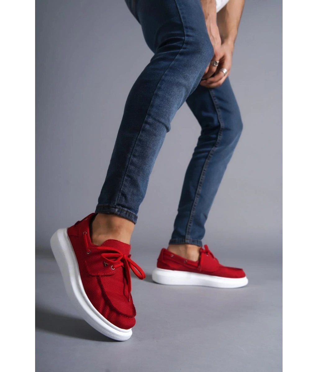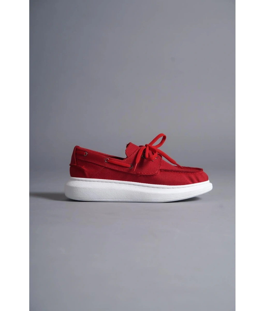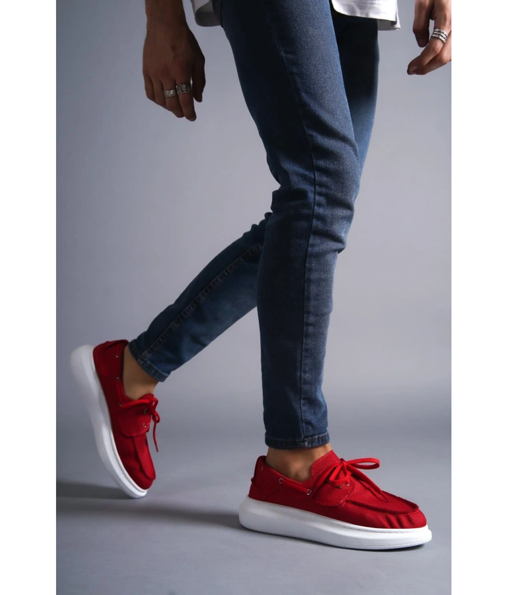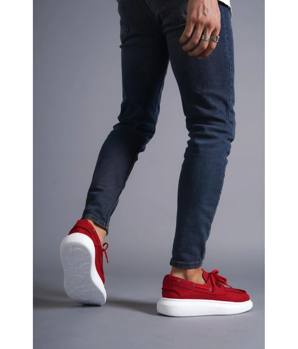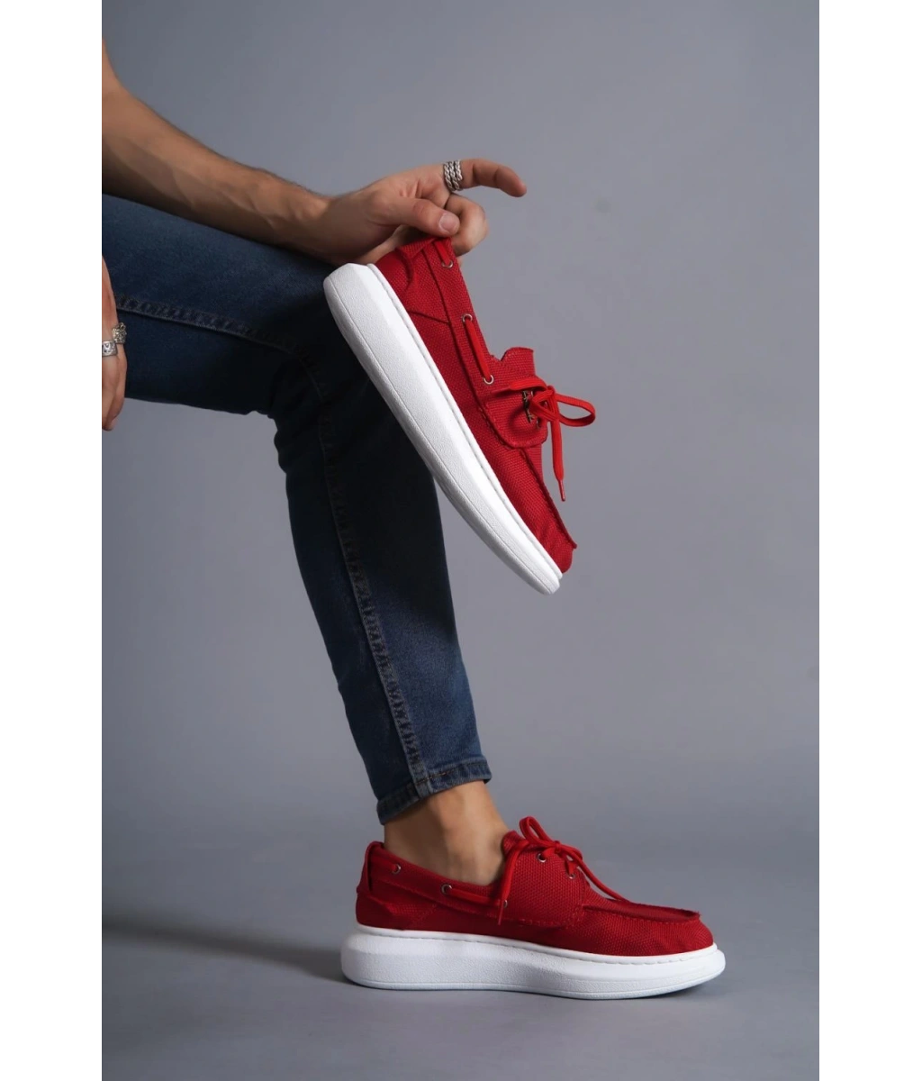 Shoecide Yüksek Taban Mevsimlik Keten Ayakkabı 009 Kırmızı