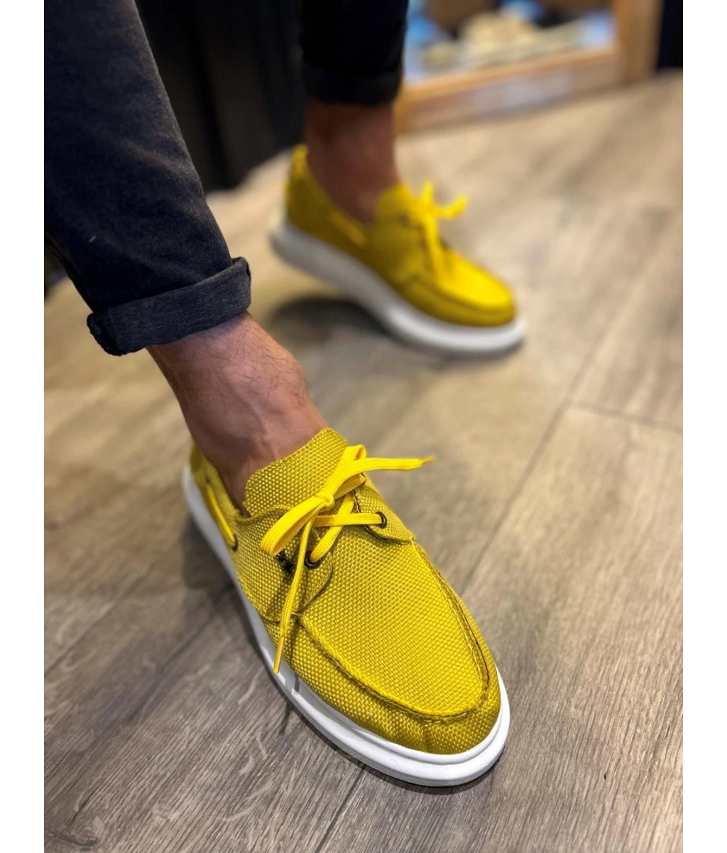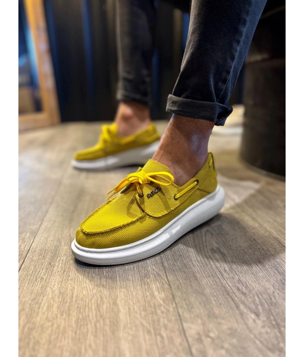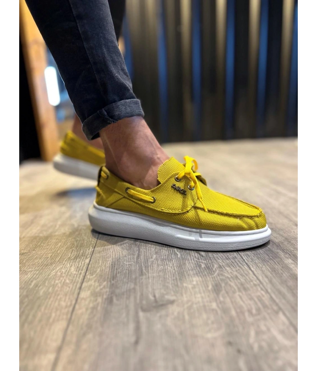 Shoecide Yüksek Taban Mevsimlik Keten Ayakkabı 009 Sarı