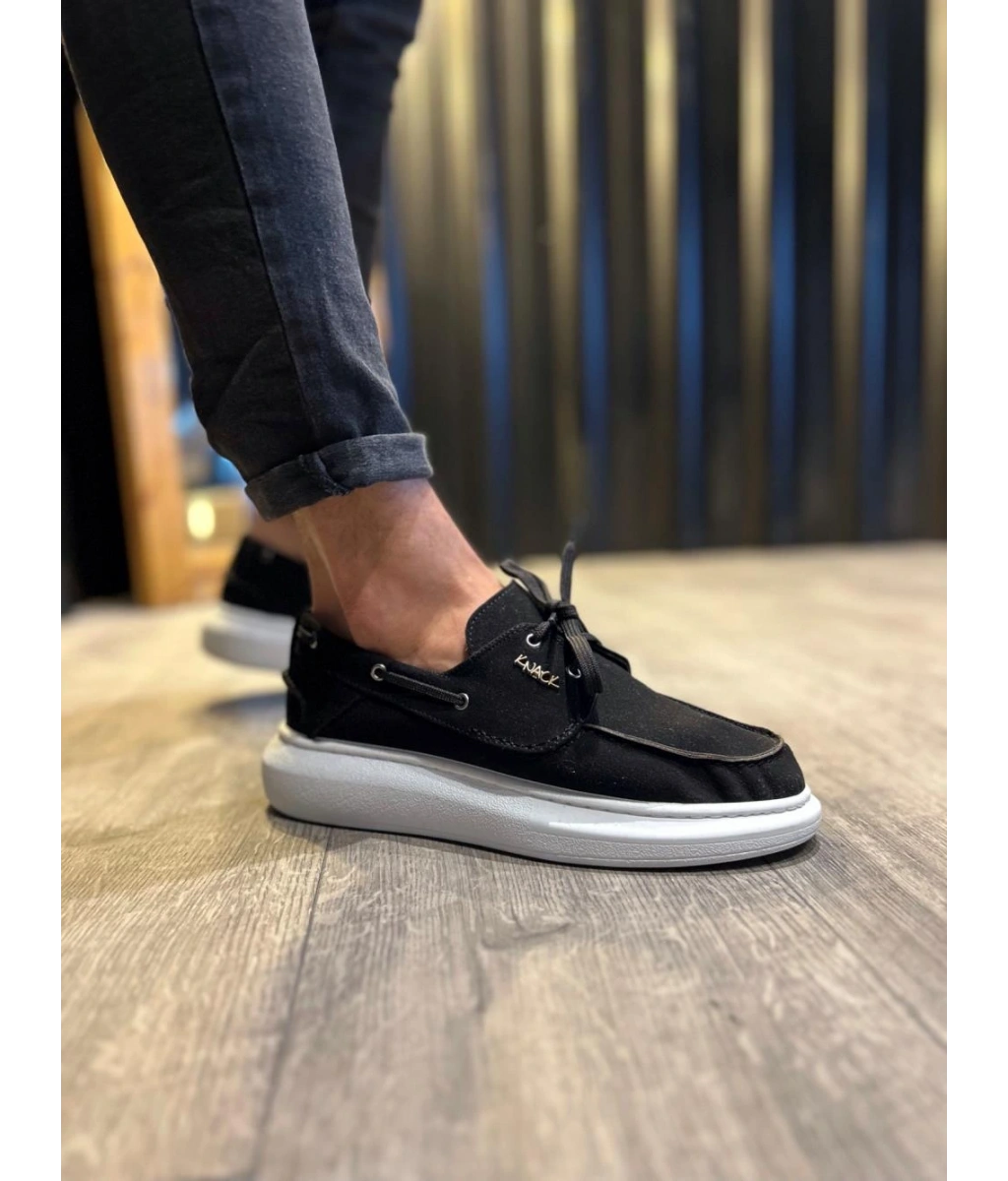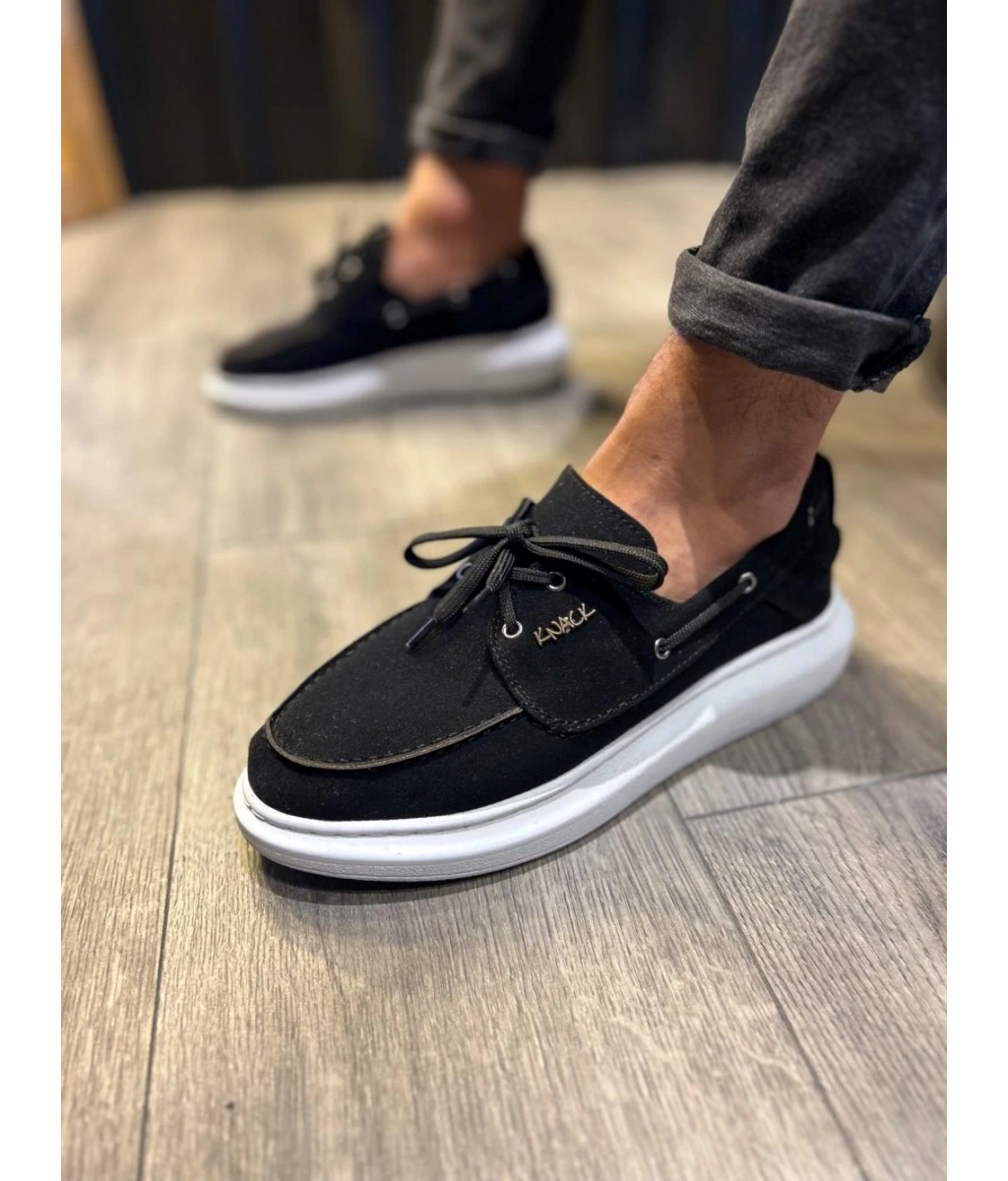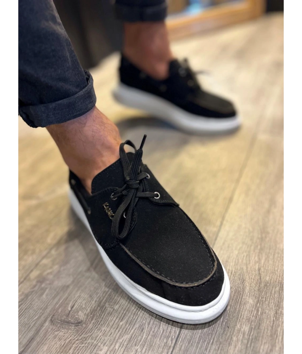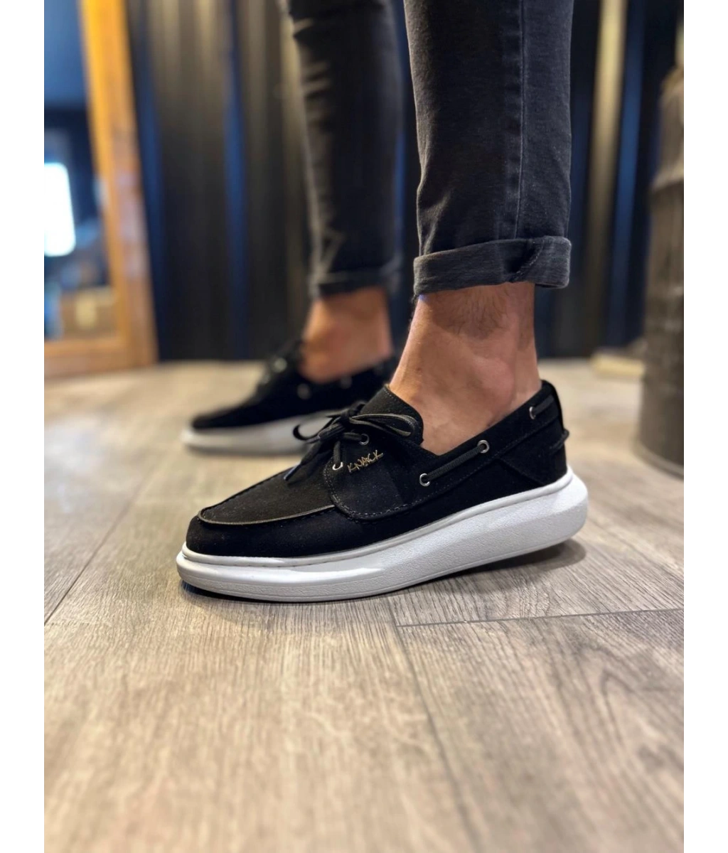 Shoecide Yüksek Taban Mevsimlik Süet Ayakkabı 009 Siyah (beyaz Taban)