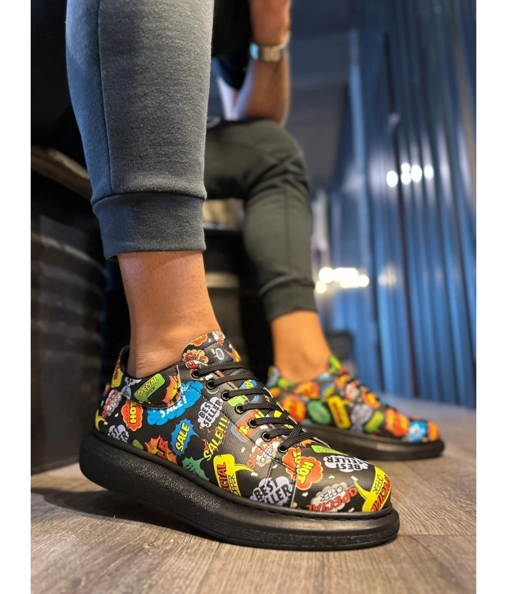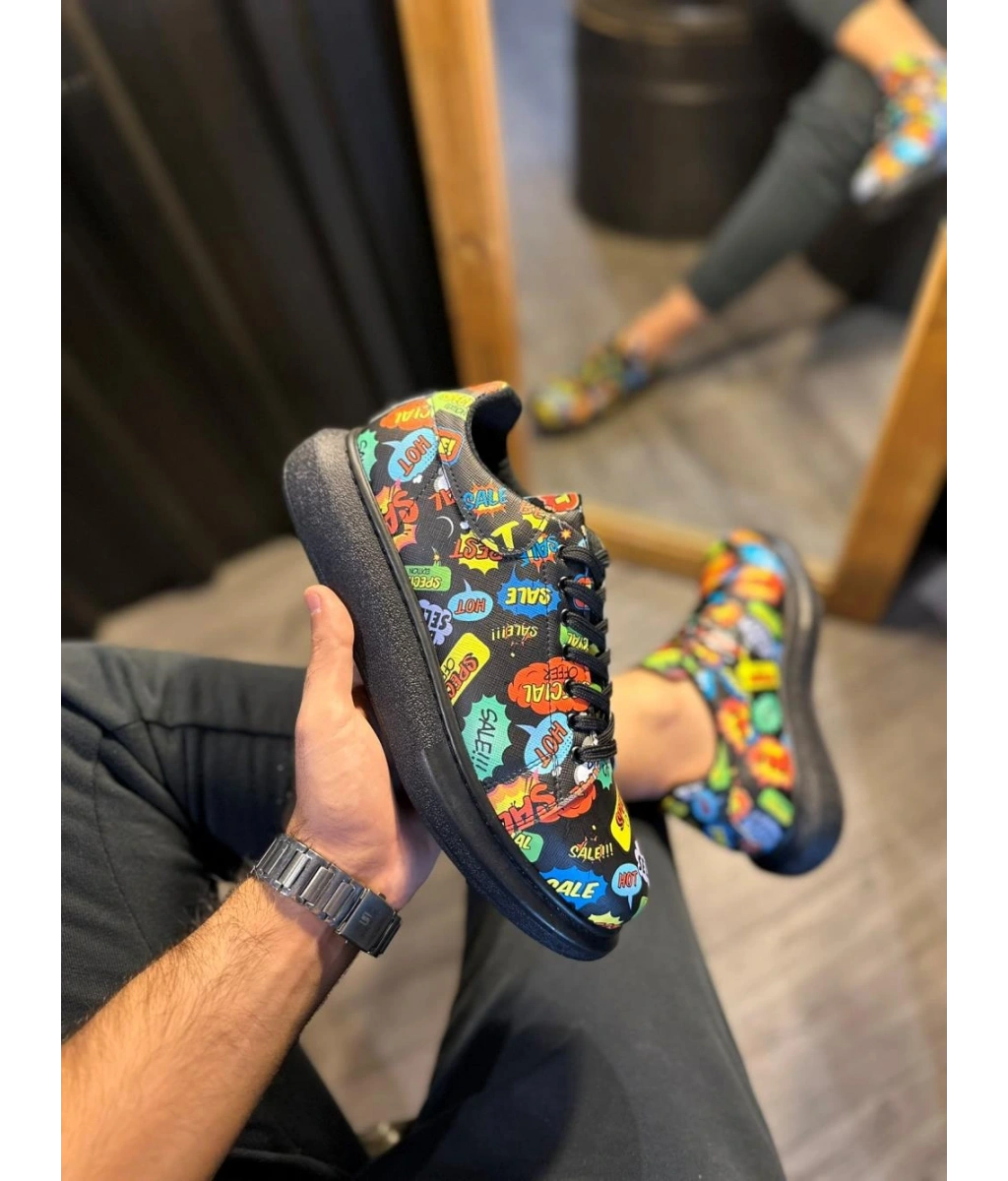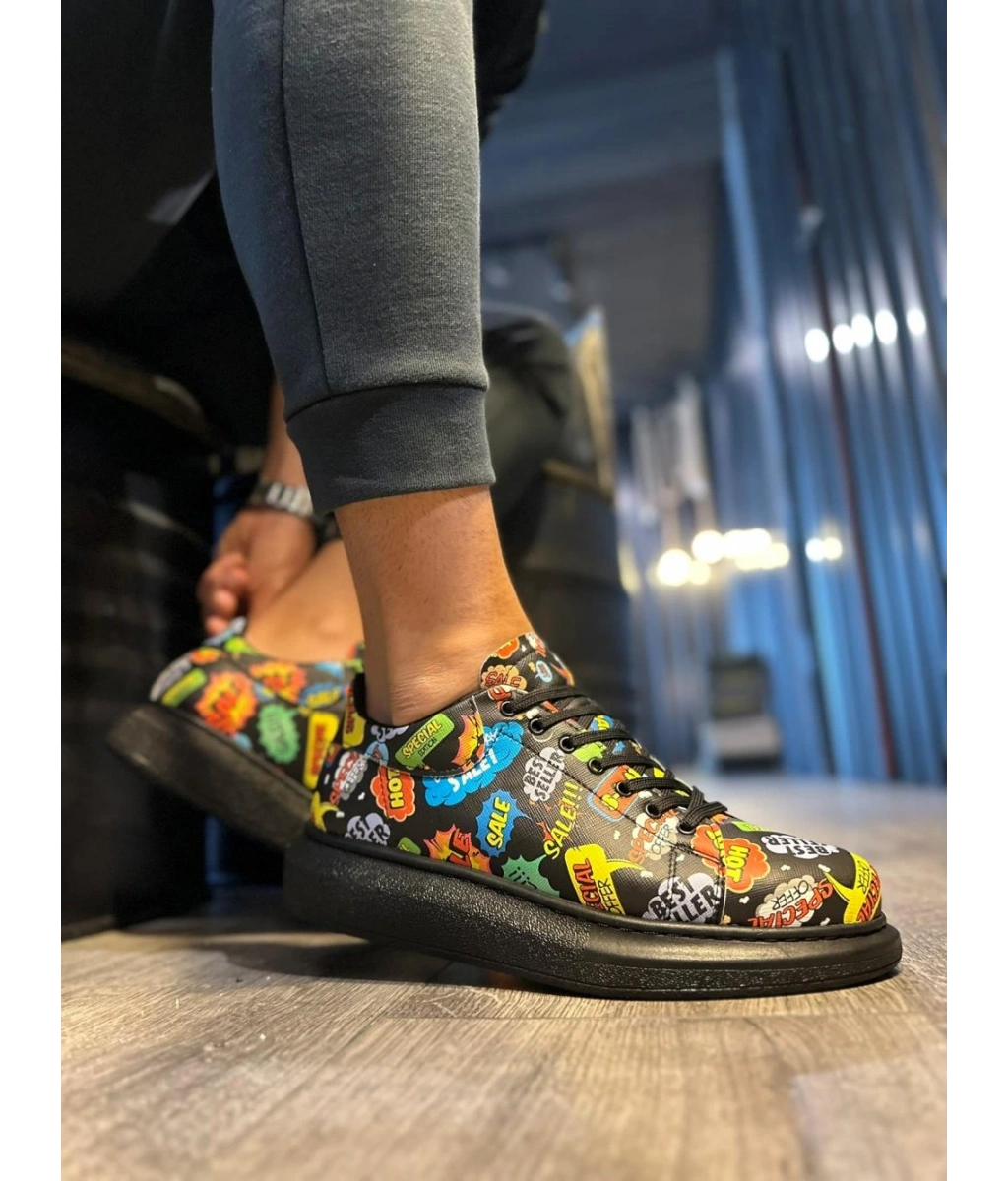 Shoecide Yüksek Taban Renkli Baskılı Günlük Ayakkabı 046 Hot