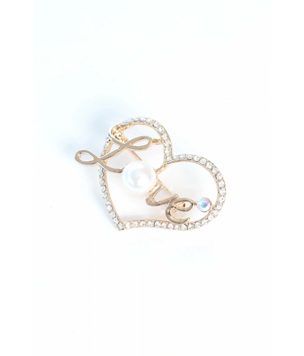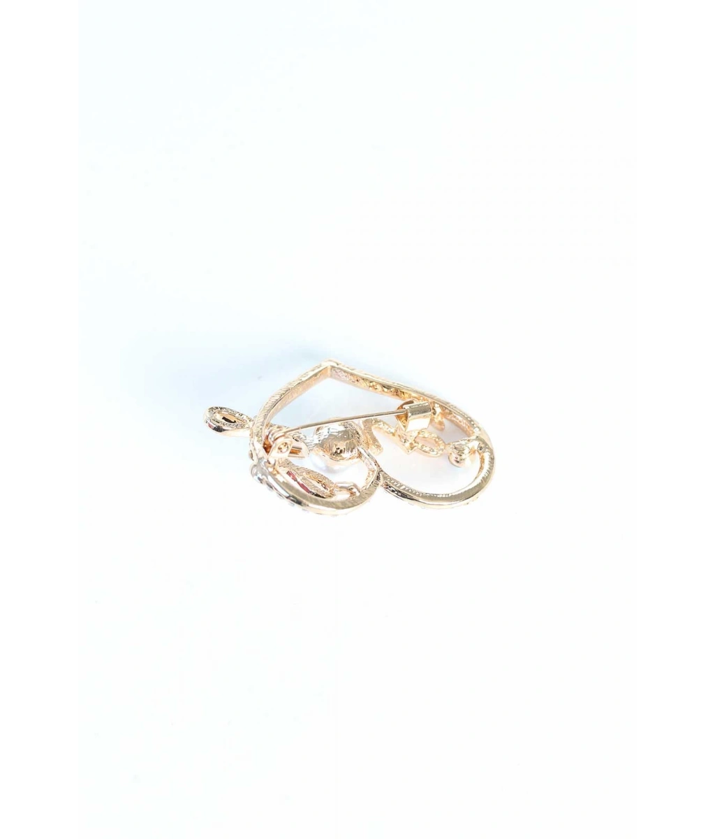 Gold renk metal kalp tasarım Zirkon Taşlı Metal Broş