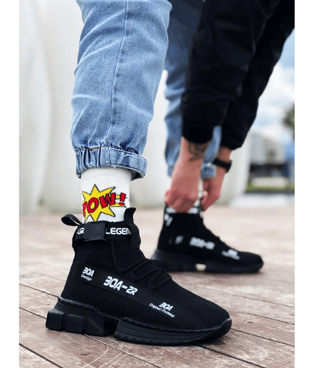 Shoecide Sb0811 Boa Yüksek Siyah Taban Siyah Paraşüt Kumaş Cilt Detaylı Yarım Bilek Spor Bot