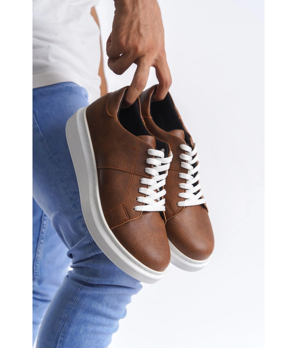 Swo151 Boost Bağcıklı Cilt Erkek Günlük Sneaker Ayakkabı Cbt - Taba