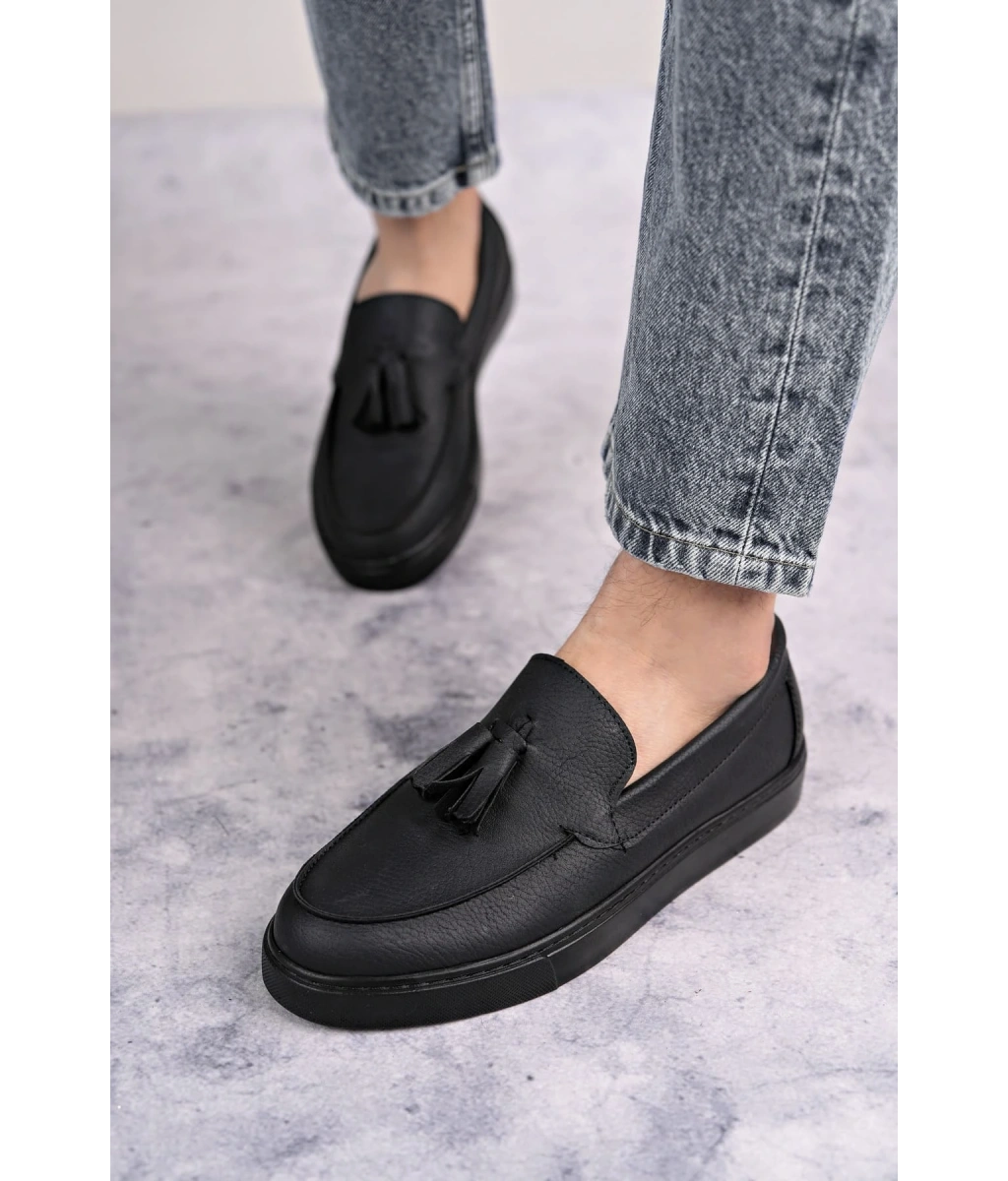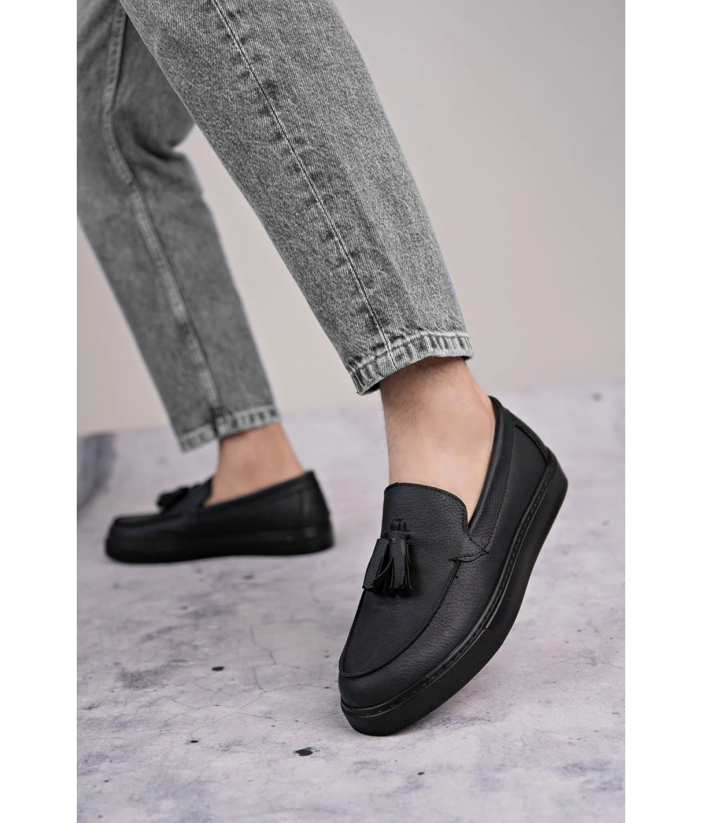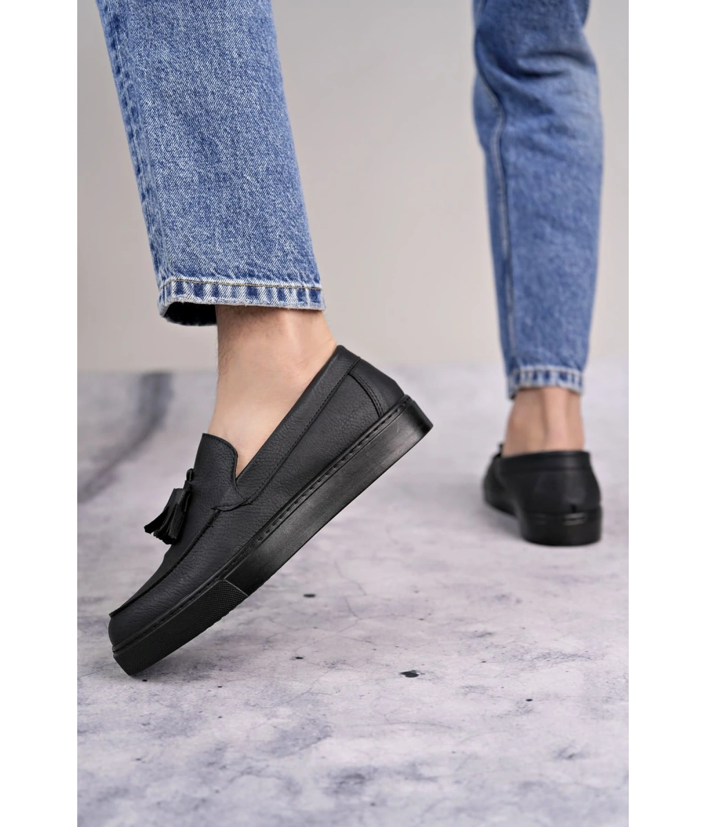 Swo154 Blaze Bağcıksız Püsküllü Cilt Erkek Günlük Spor Klasik Ayakkabı Cst - Siyah