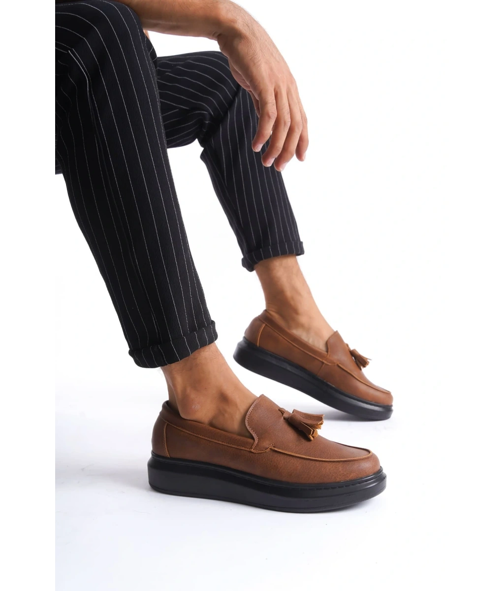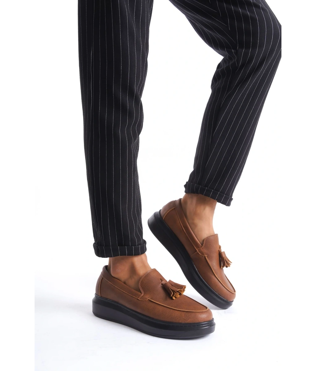 Swo154 Blaze Bağcıksız Püsküllü Cilt Erkek Günlük Spor Klasik Ayakkabı Cst - Taba