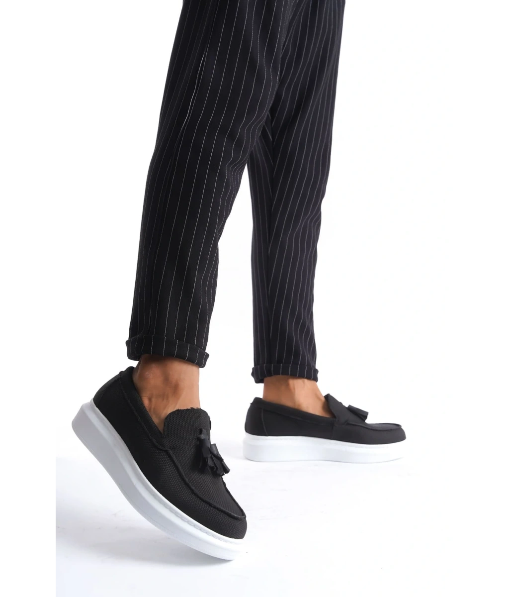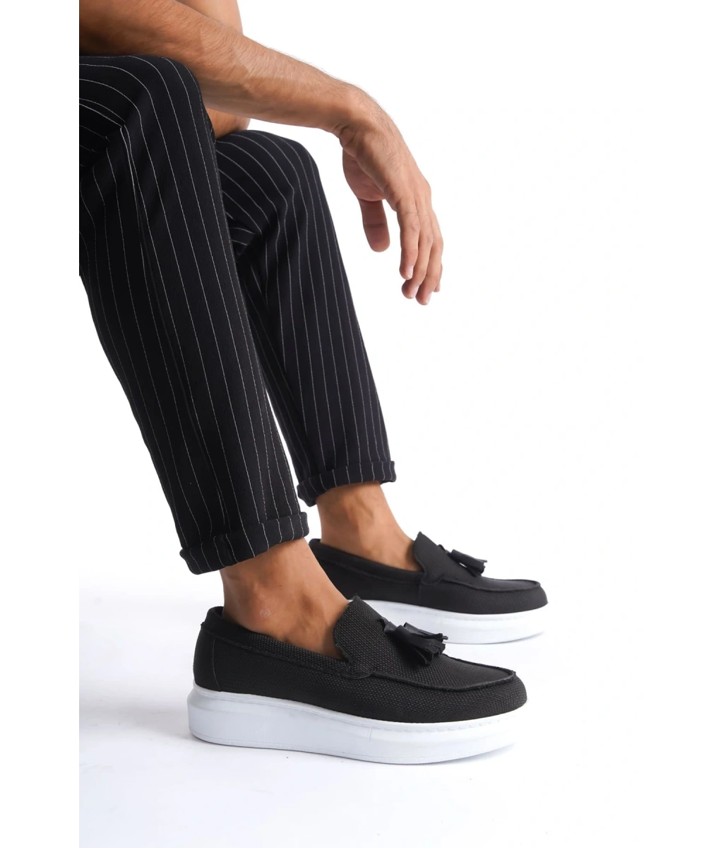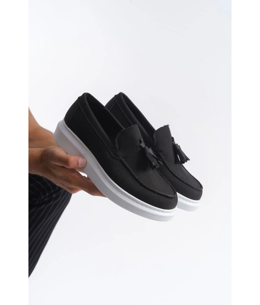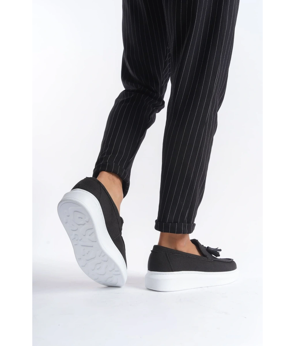 Swo154 Blaze Bağcıksız Püsküllü Keten Erkek Günlük Spor Klasik Ayakkabı Kbt - Siyah