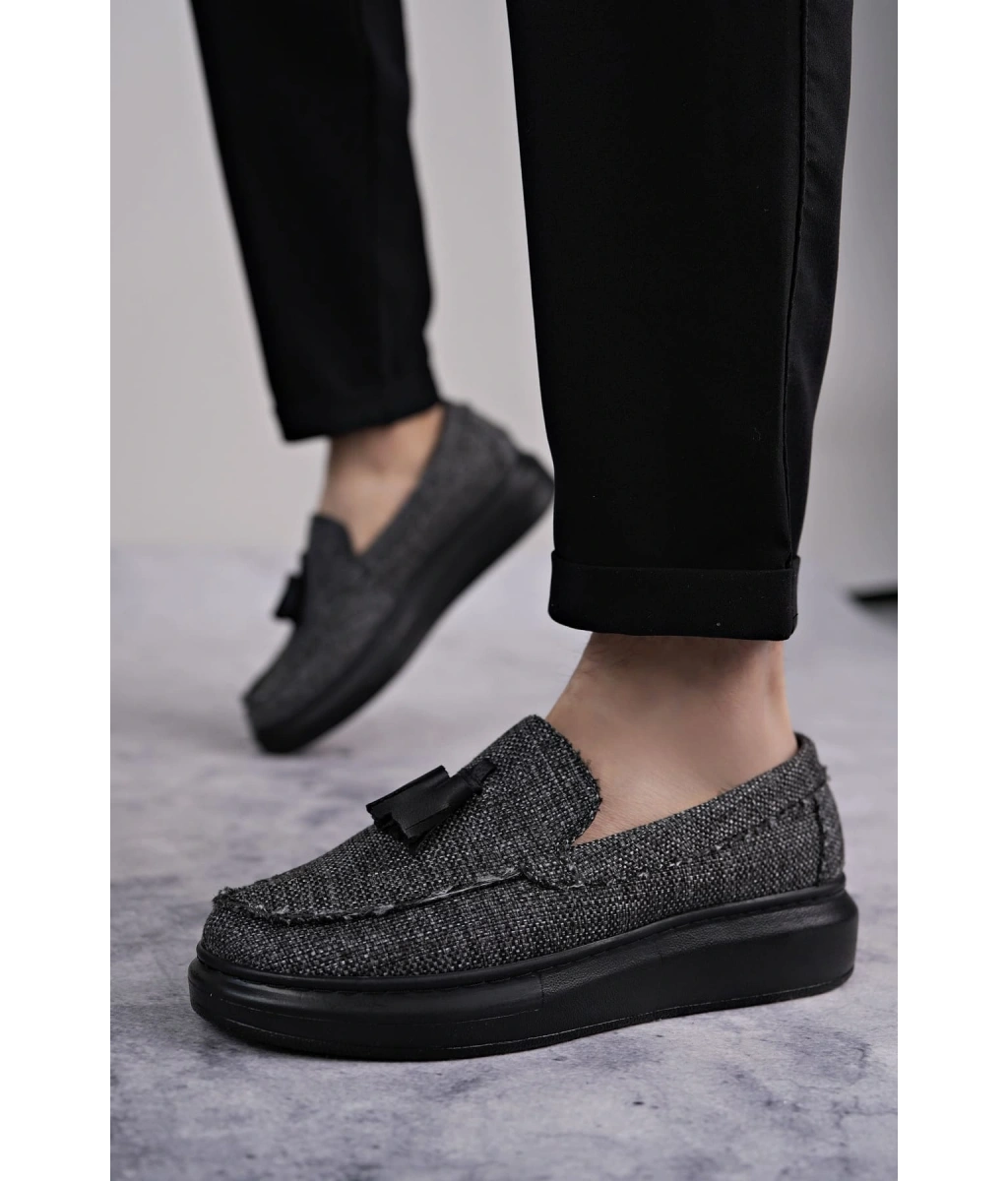 Swo154 Blaze Bağcıksız Püsküllü Keten Erkek Günlük Spor Klasik Ayakkabı Kbt - Siyah
