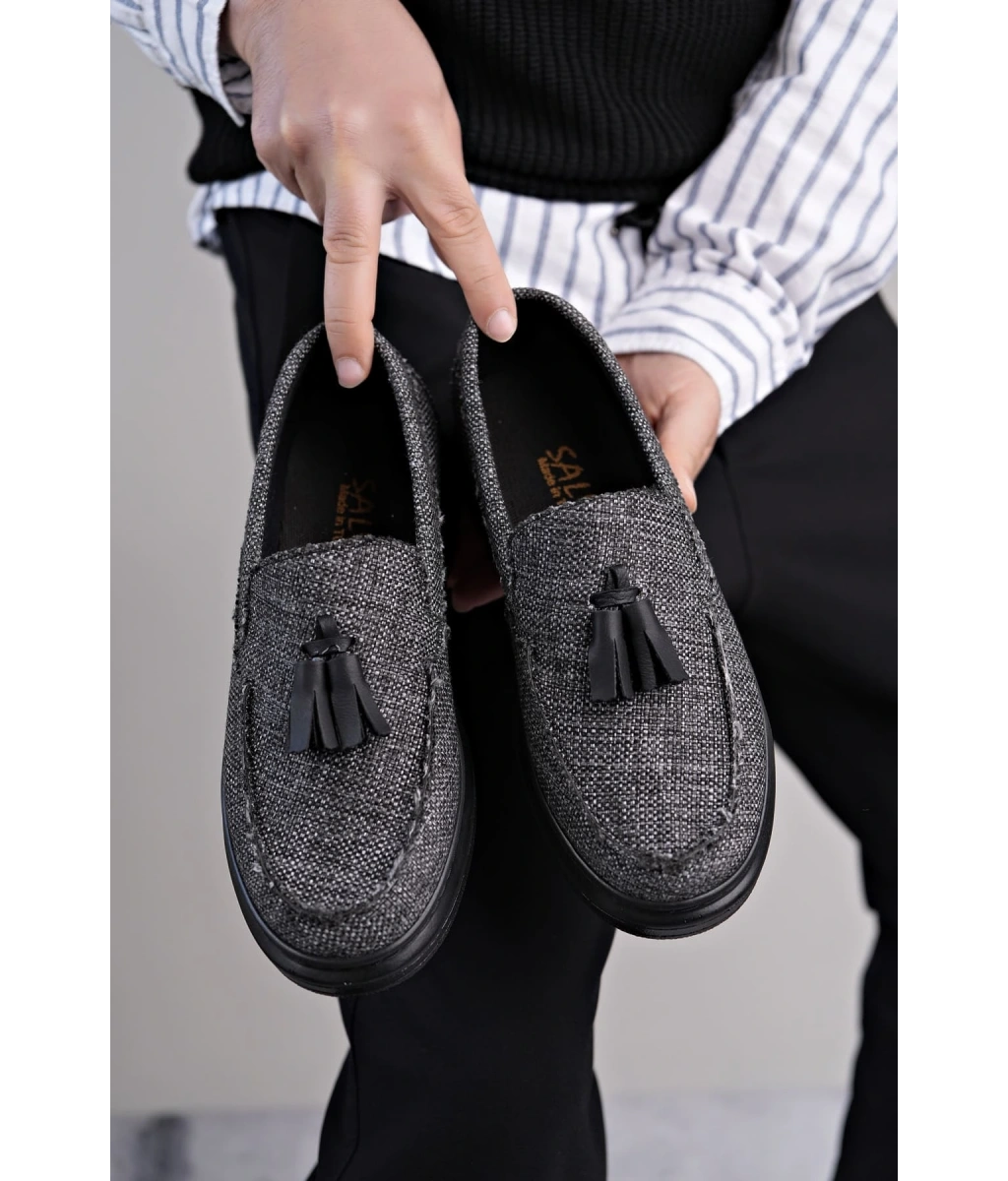 Swo154 Blaze Bağcıksız Püsküllü Keten Erkek Günlük Spor Klasik Ayakkabı Kst - Gri