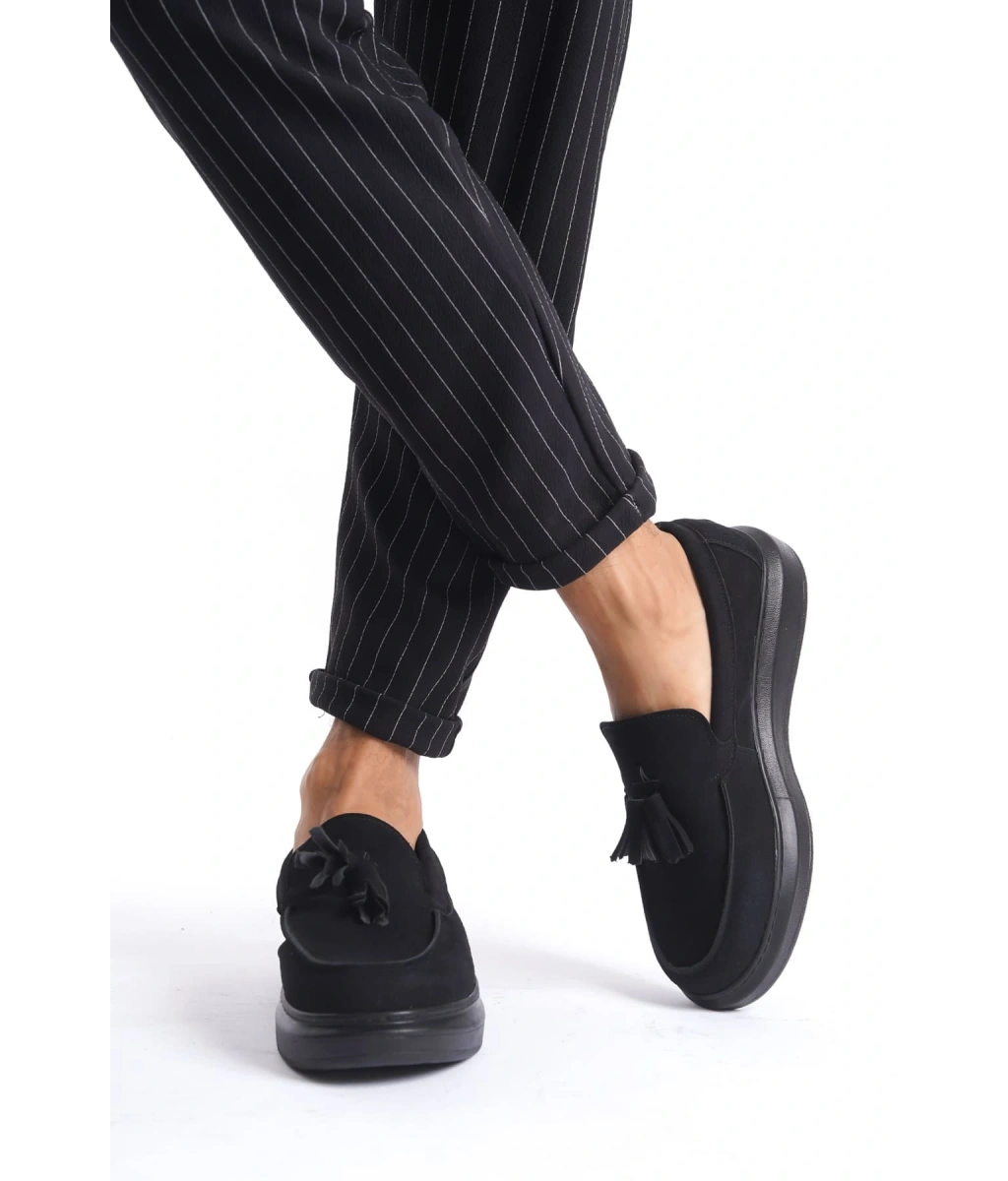 Swo154 Blaze Bağcıksız Püsküllü Süet Erkek Günlük Spor Klasik Ayakkabı Sst - Siyah
