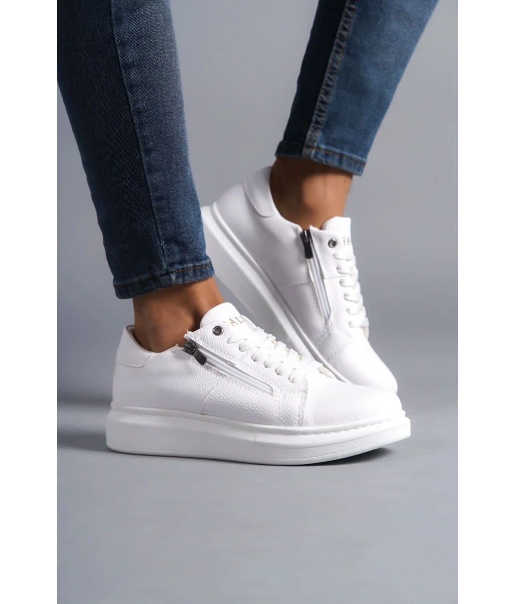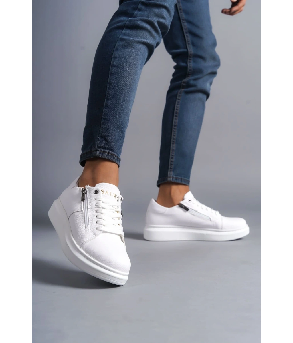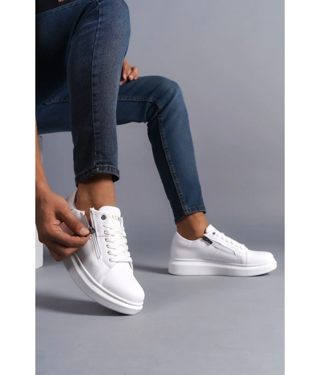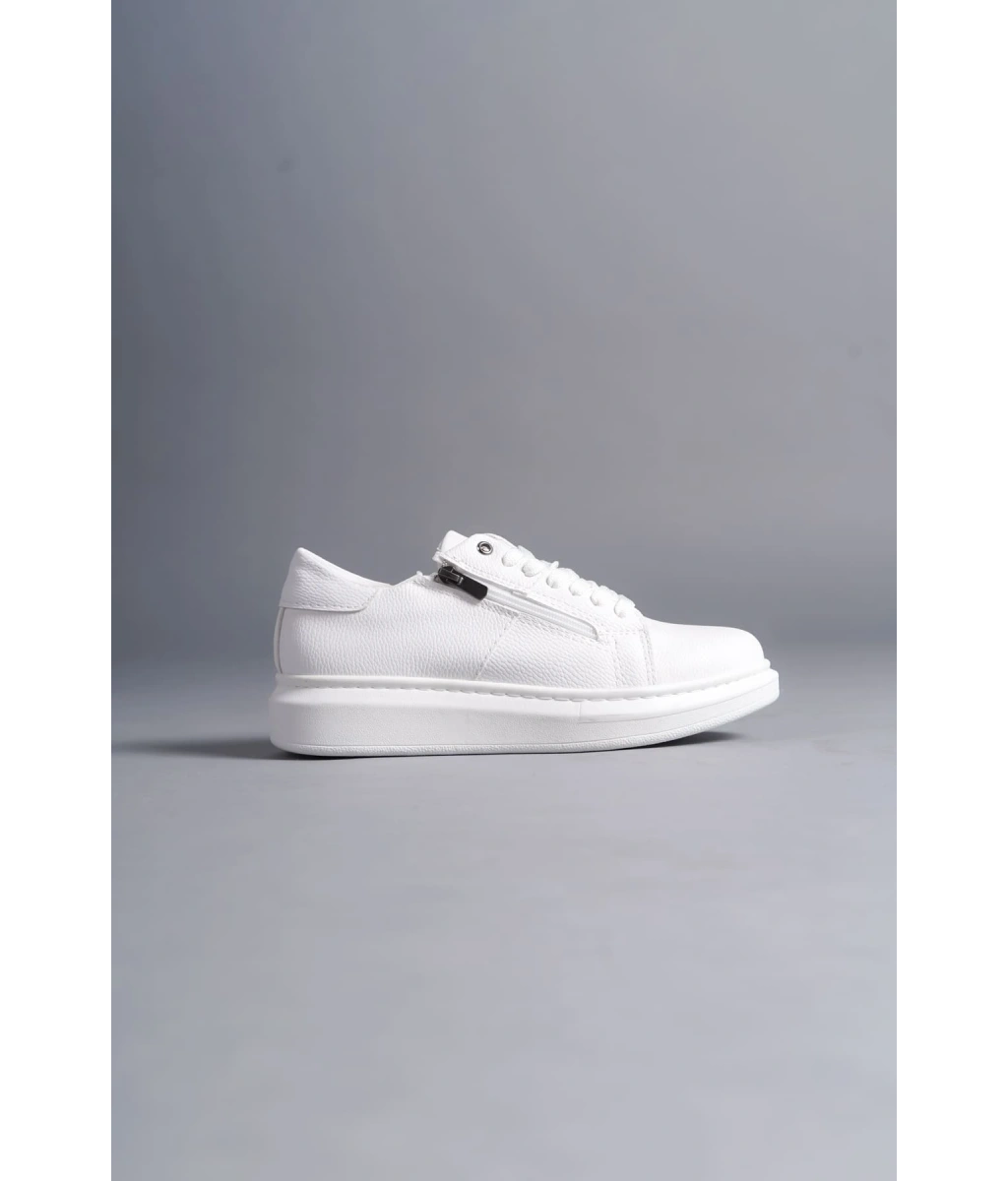 Swo155 Warrior Bağcıklı Ve Fermuarlı Cilt Erkek Günlük Sneaker Ayakkabı Cbt - Beyaz