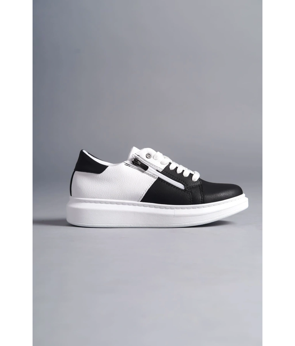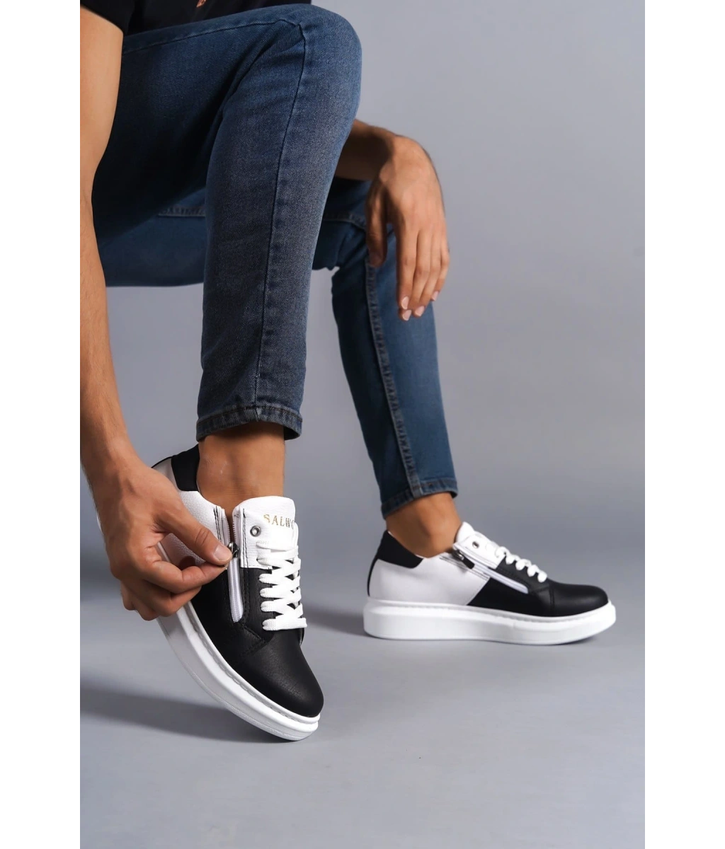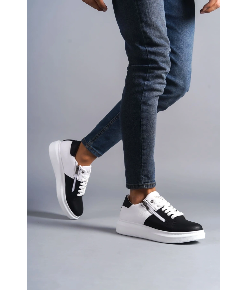 Swo155 Warrior Bağcıklı Ve Fermuarlı Cilt Erkek Günlük Sneaker Ayakkabı Cbt - Beyaz/siyah