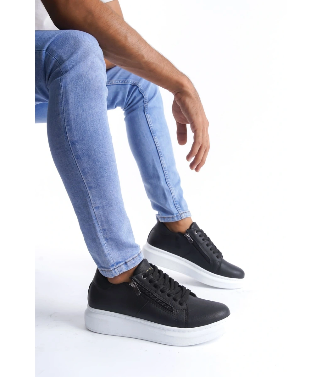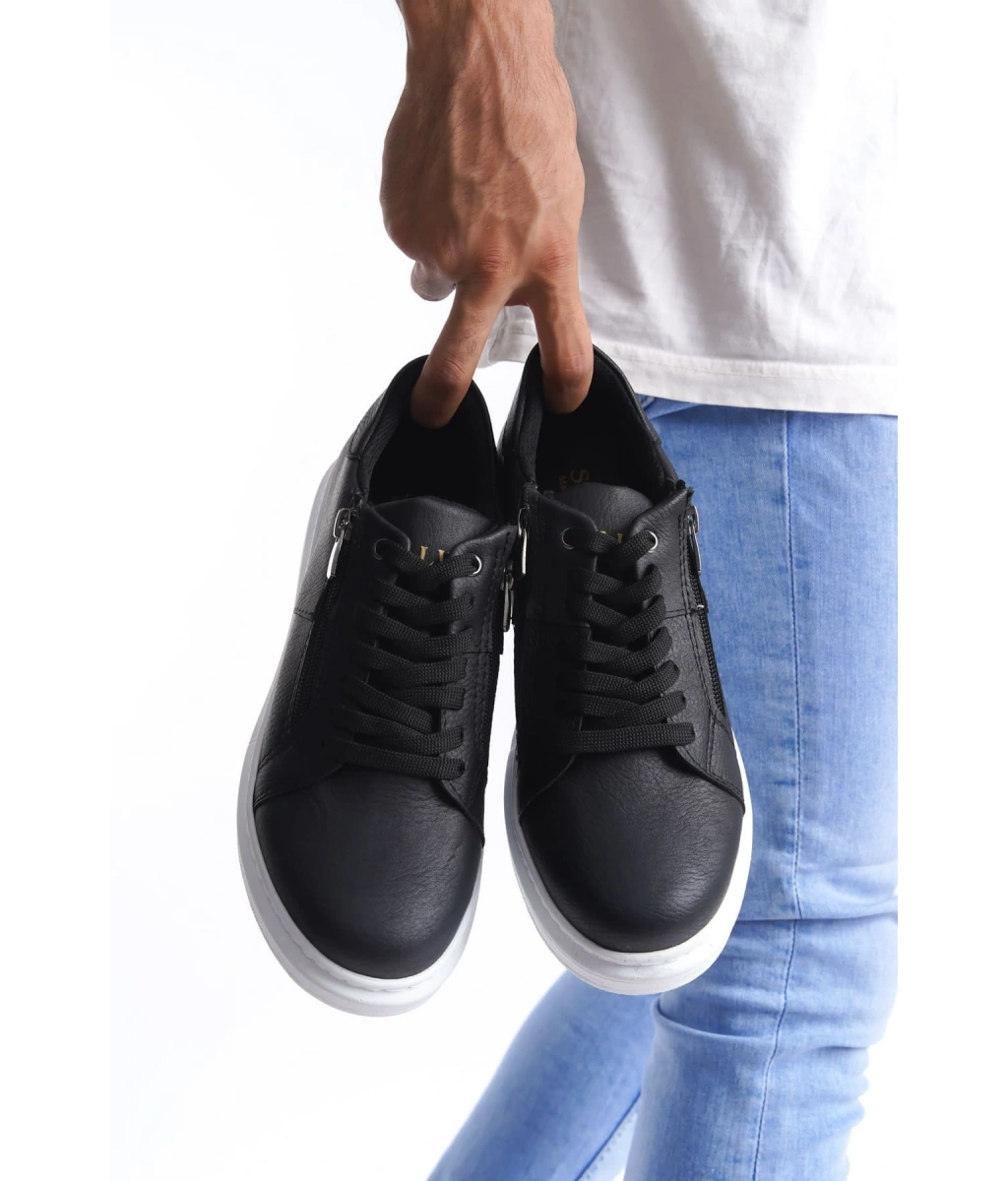 Swo155 Warrior Bağcıklı Ve Fermuarlı Cilt Erkek Günlük Sneaker Ayakkabı Cbt - Siyah