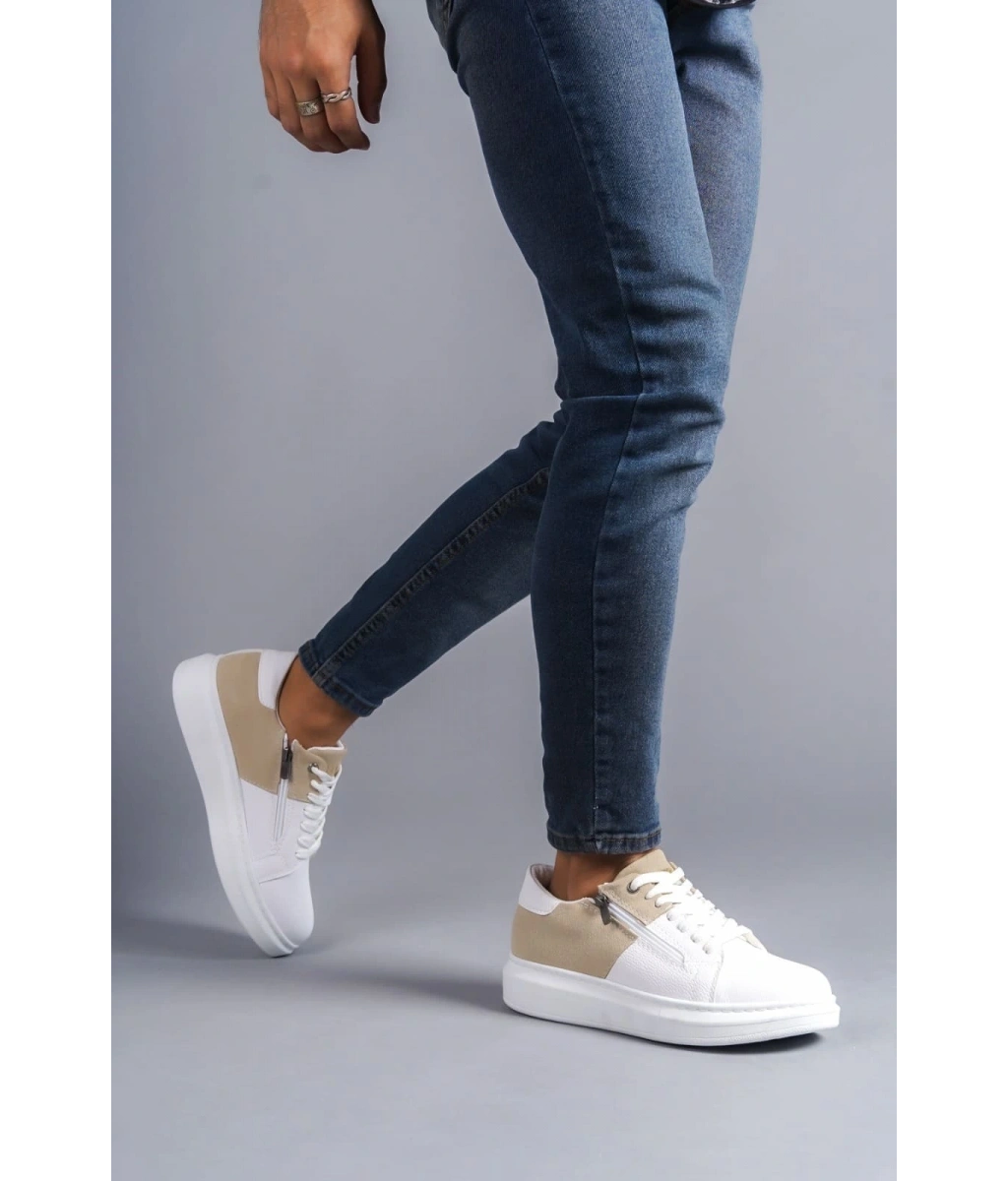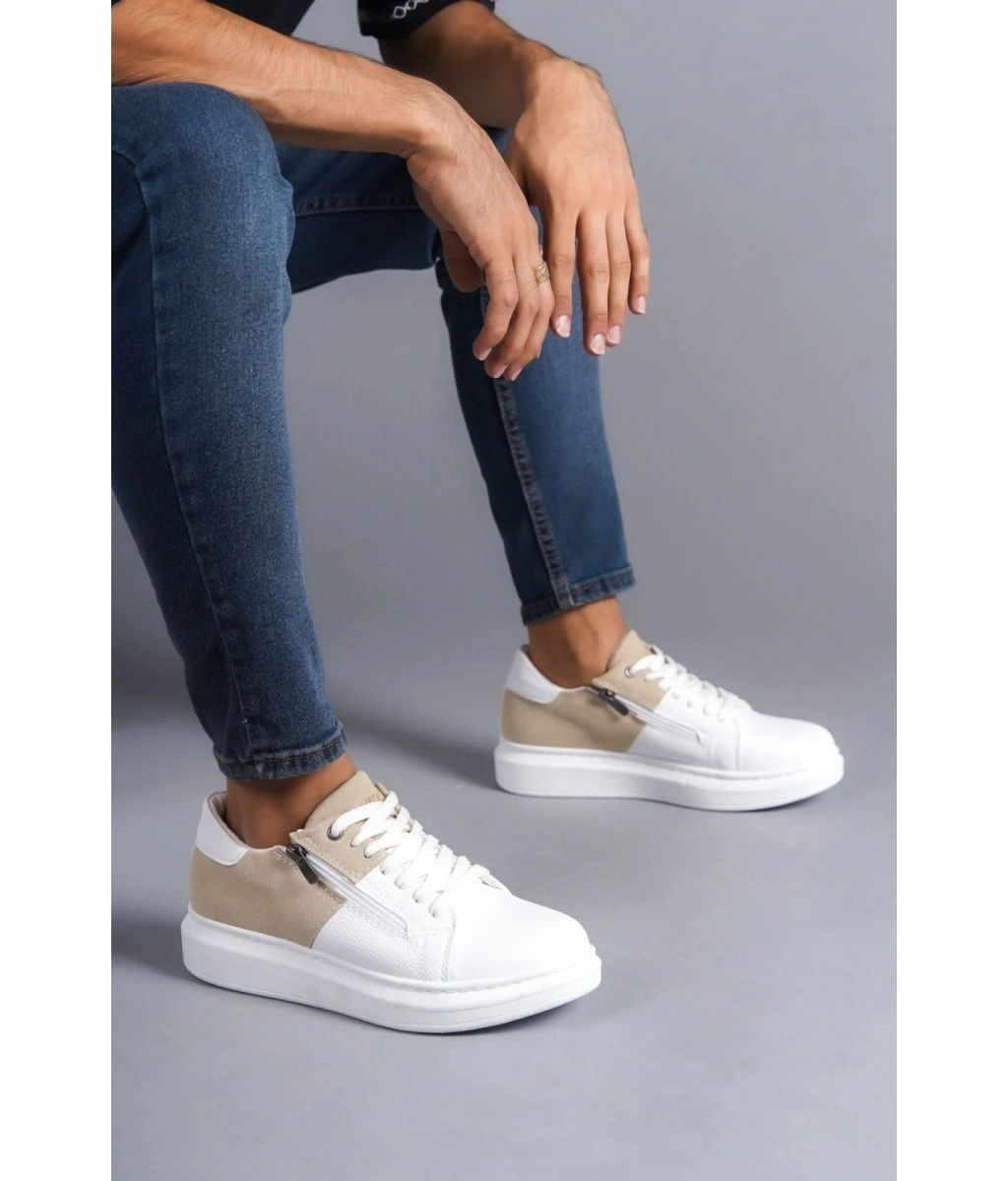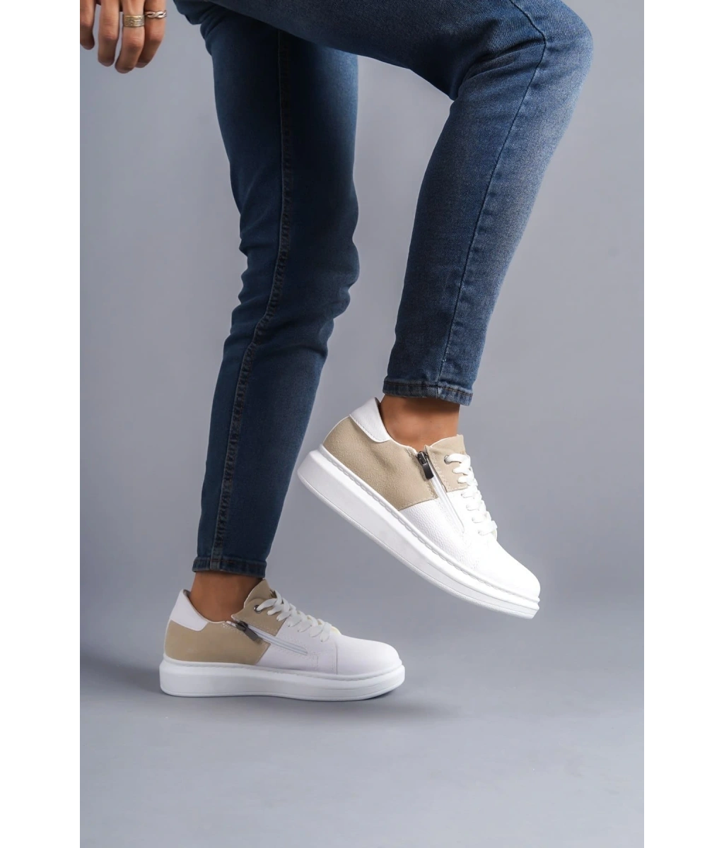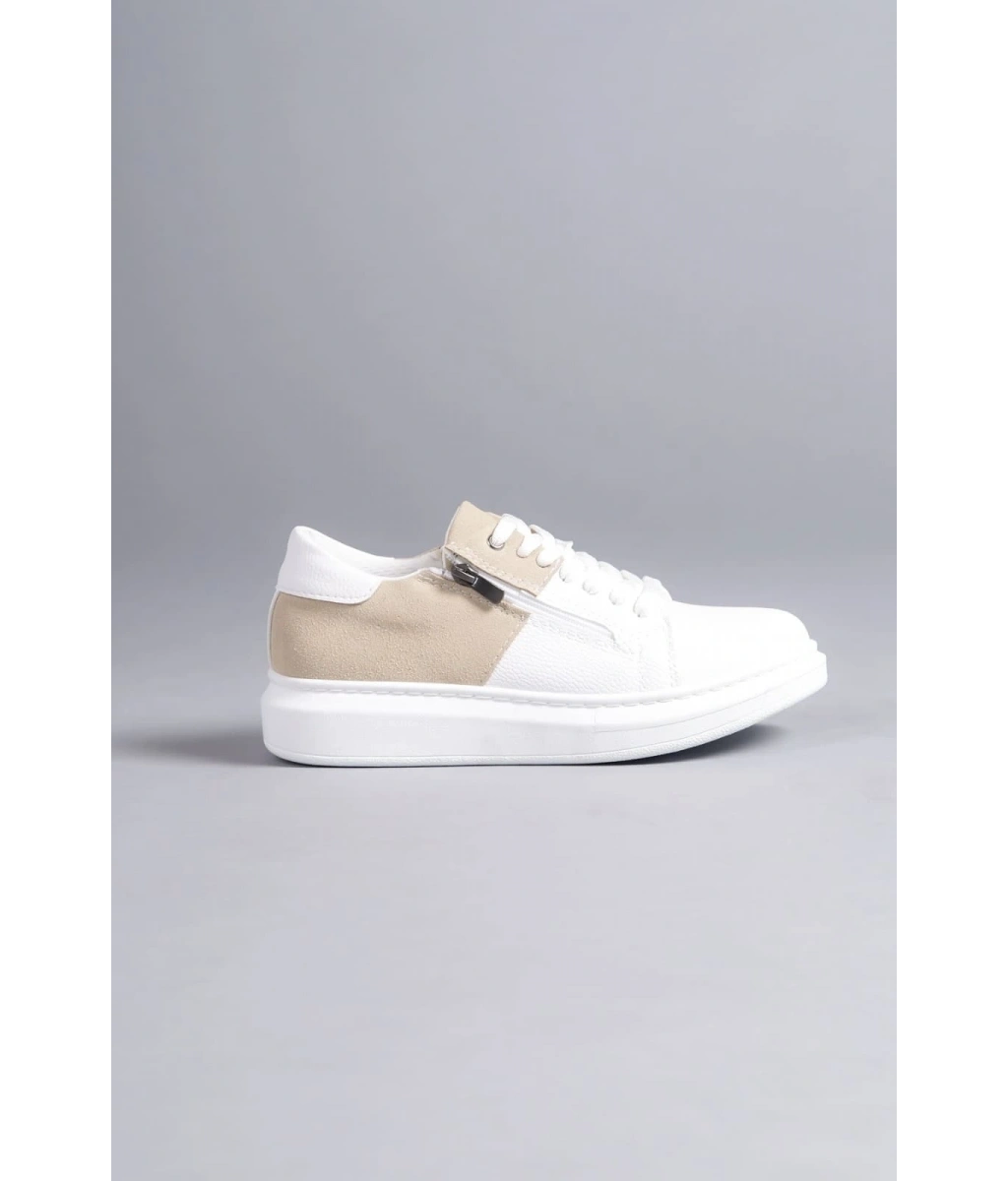 Swo155 Warrior Bağcıklı Ve Fermuarlı Cilt Süet Erkek Günlük Sneaker Ayakkabı Csbt - Beyaz/krem