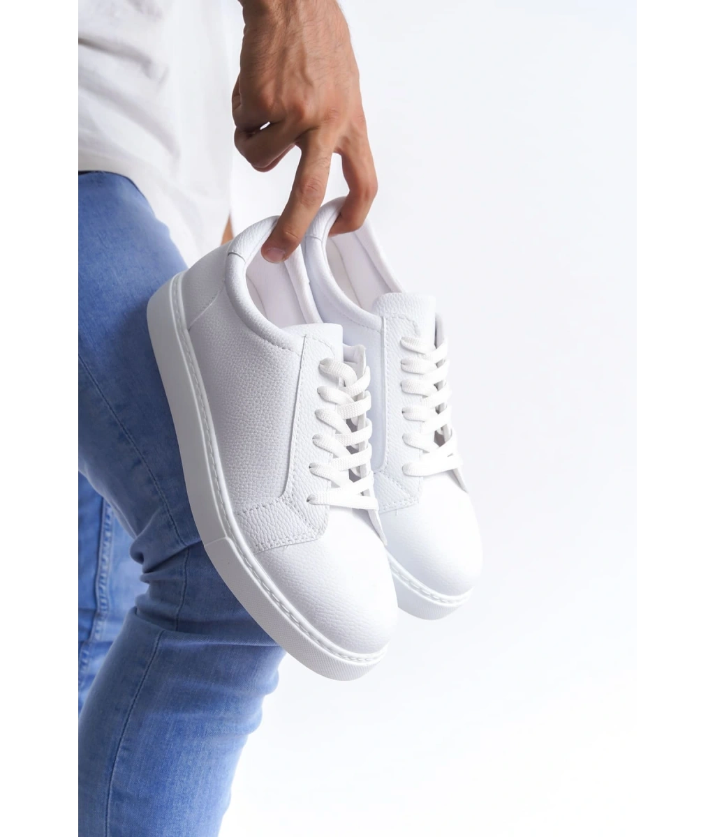 Swo165 Elite Bağcıklı Cilt Erkek Günlük Sneaker Ayakkabı Cbt - Beyaz