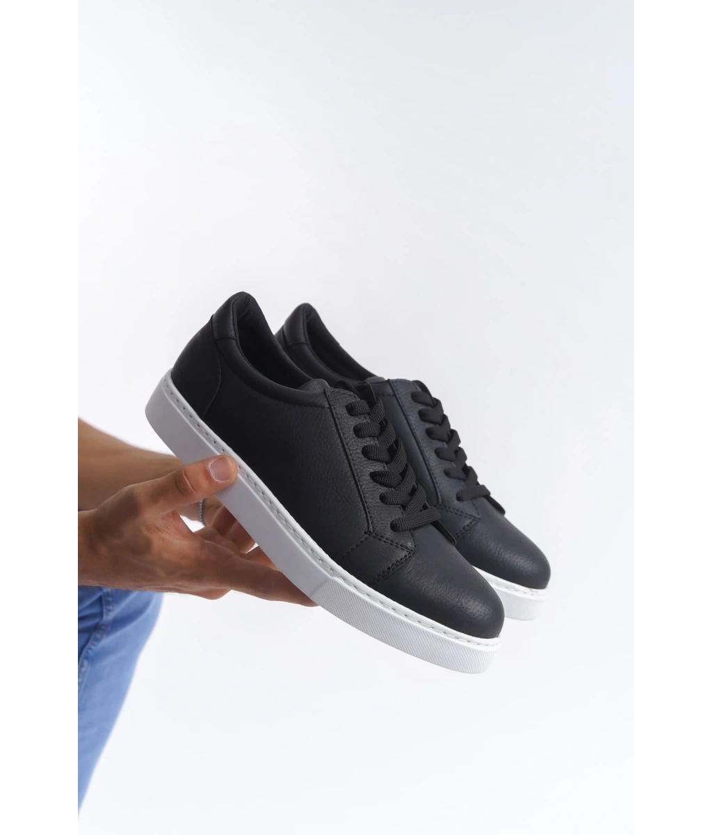 Swo165 Elite Bağcıklı Cilt Erkek Günlük Sneaker Ayakkabı Cbt - Siyah