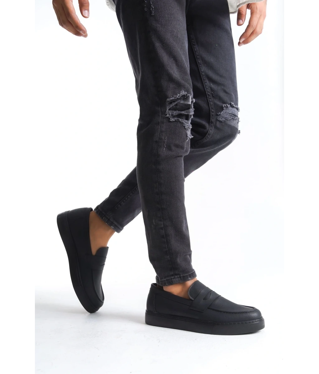Swo180 Estilo X Bağcıksız Cilt Erkek Günlük Spor Klasik Ayakkabı Cst - Siyah