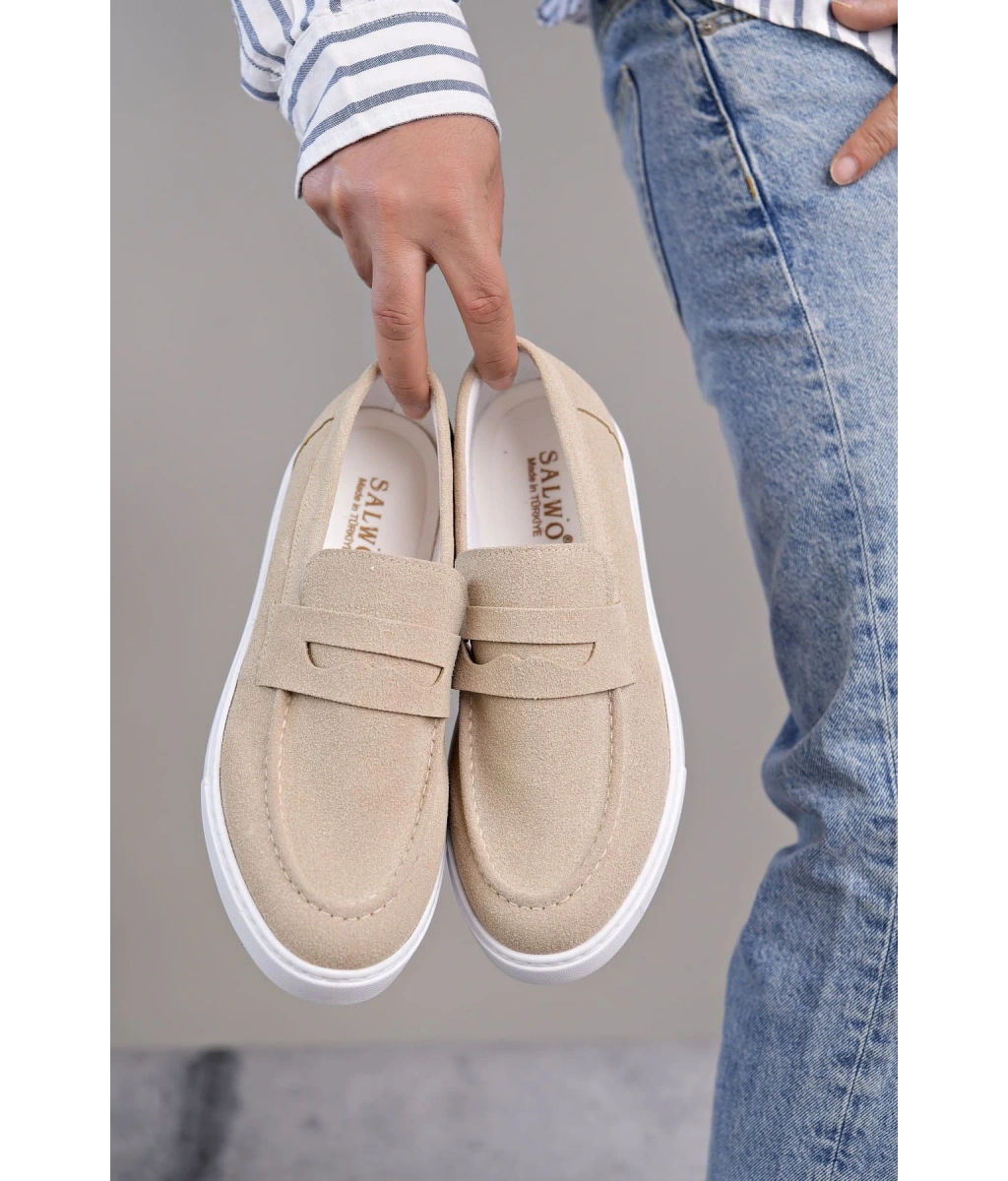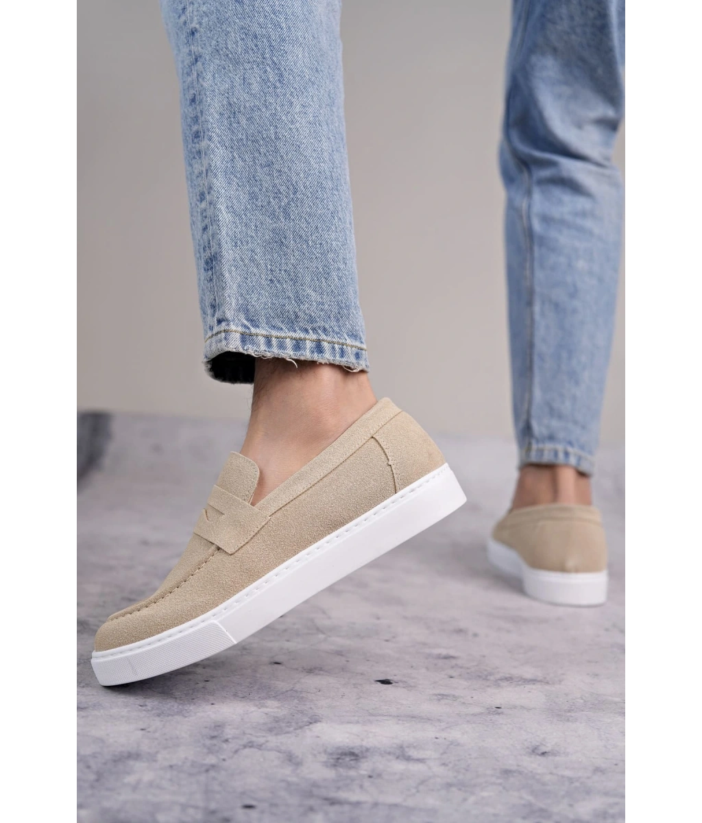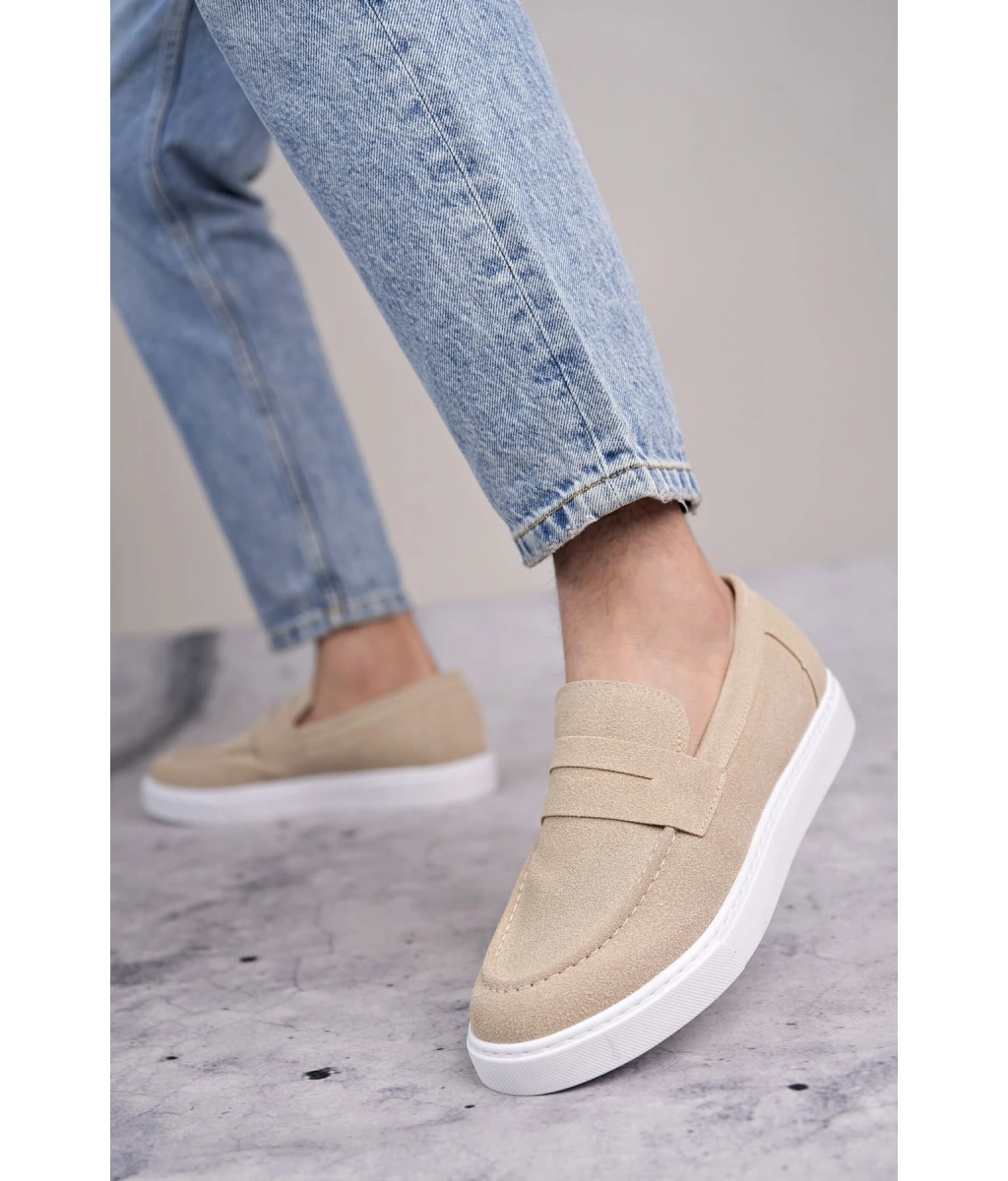 Swo180 Estilo X Bağcıksız Süet Erkek Günlük Spor Klasik Ayakkabı Sbt - Krem