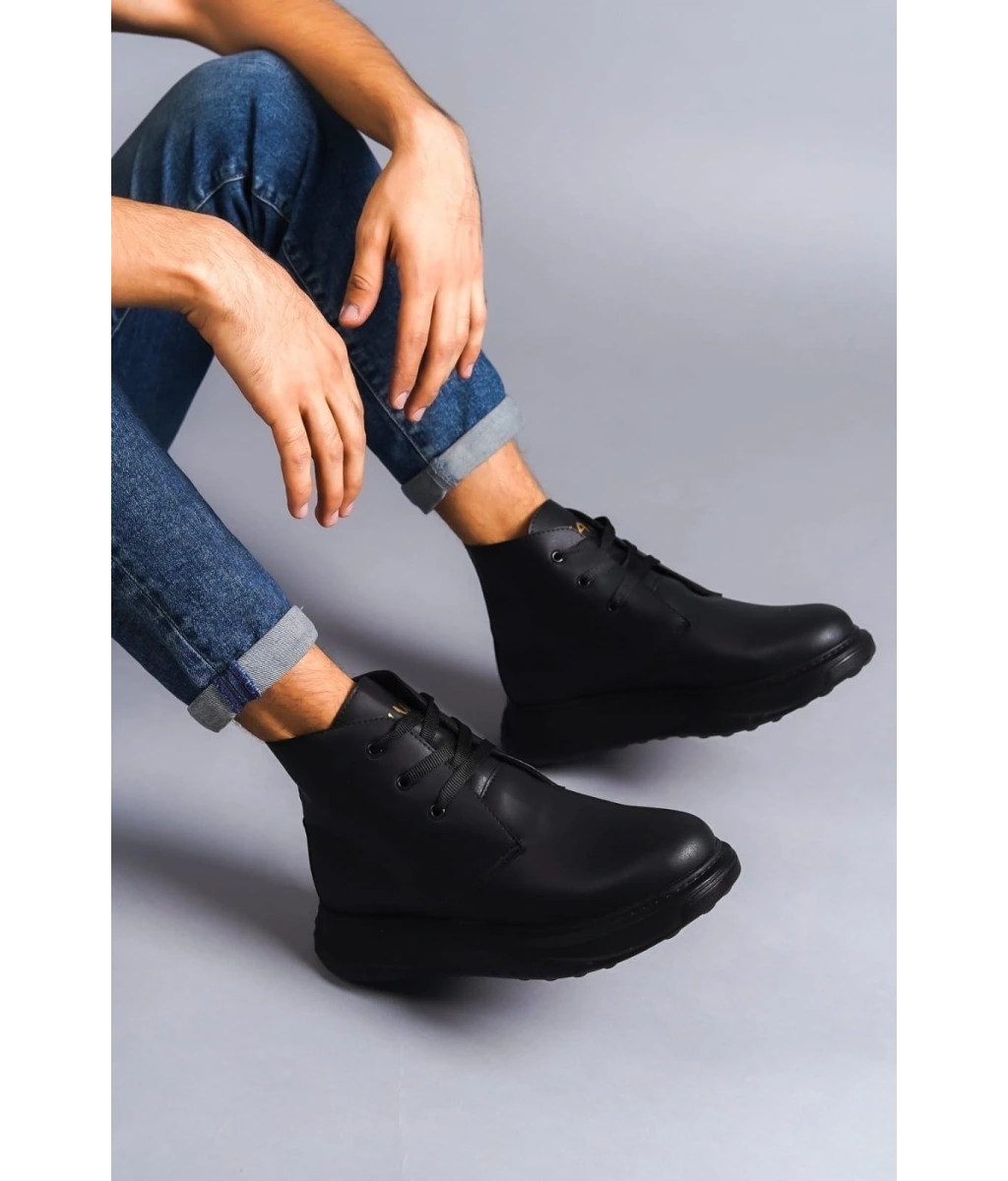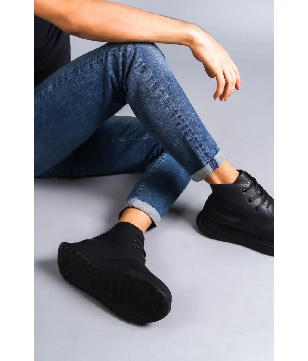 Shoecide Sb0713 Bağcıklı Yüksek Siyah Taban Erkek Tarz Spor Bot