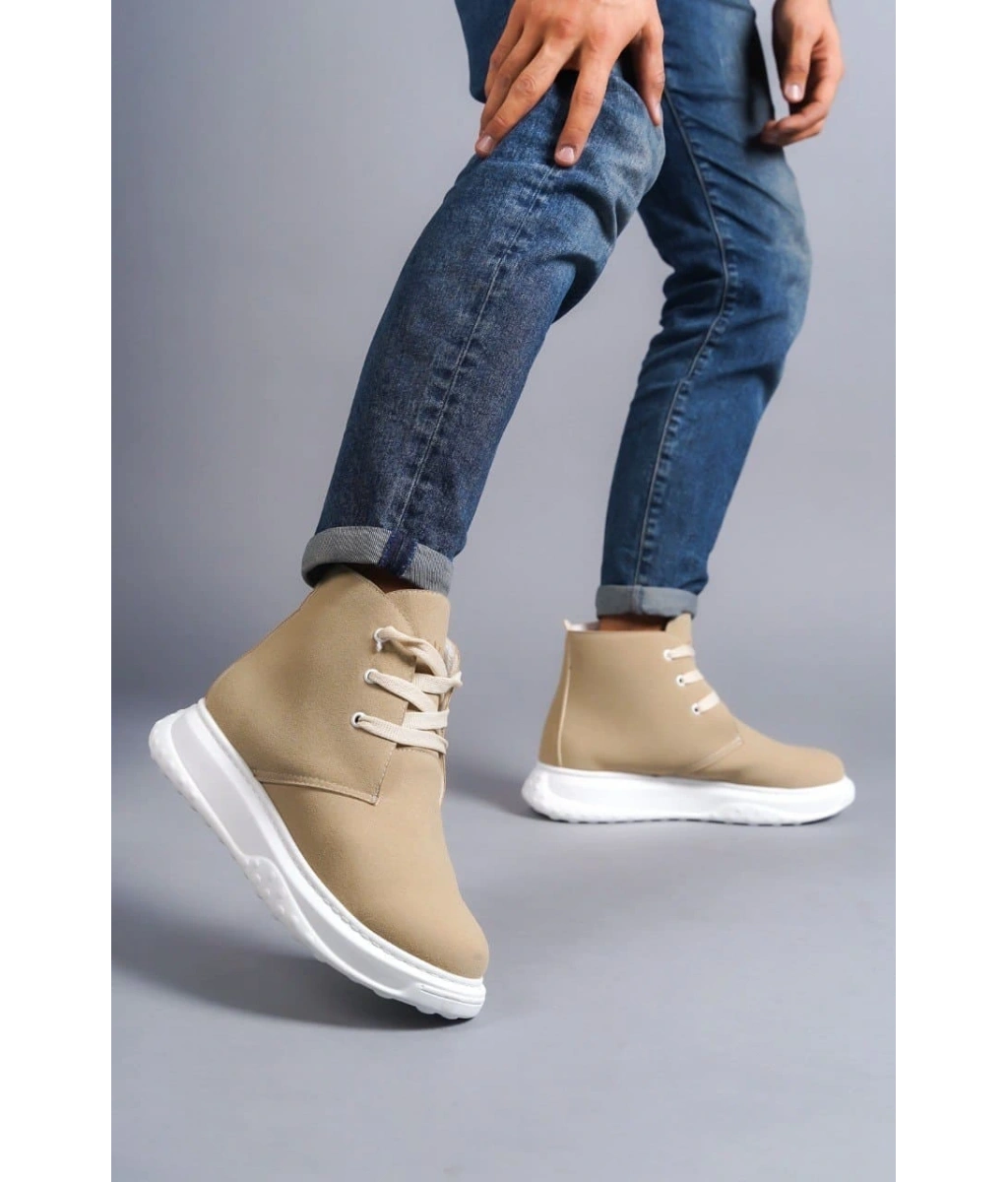 Swo204 Franca Bağcıklı Süet Erkek Spor Bot Bt - Bej