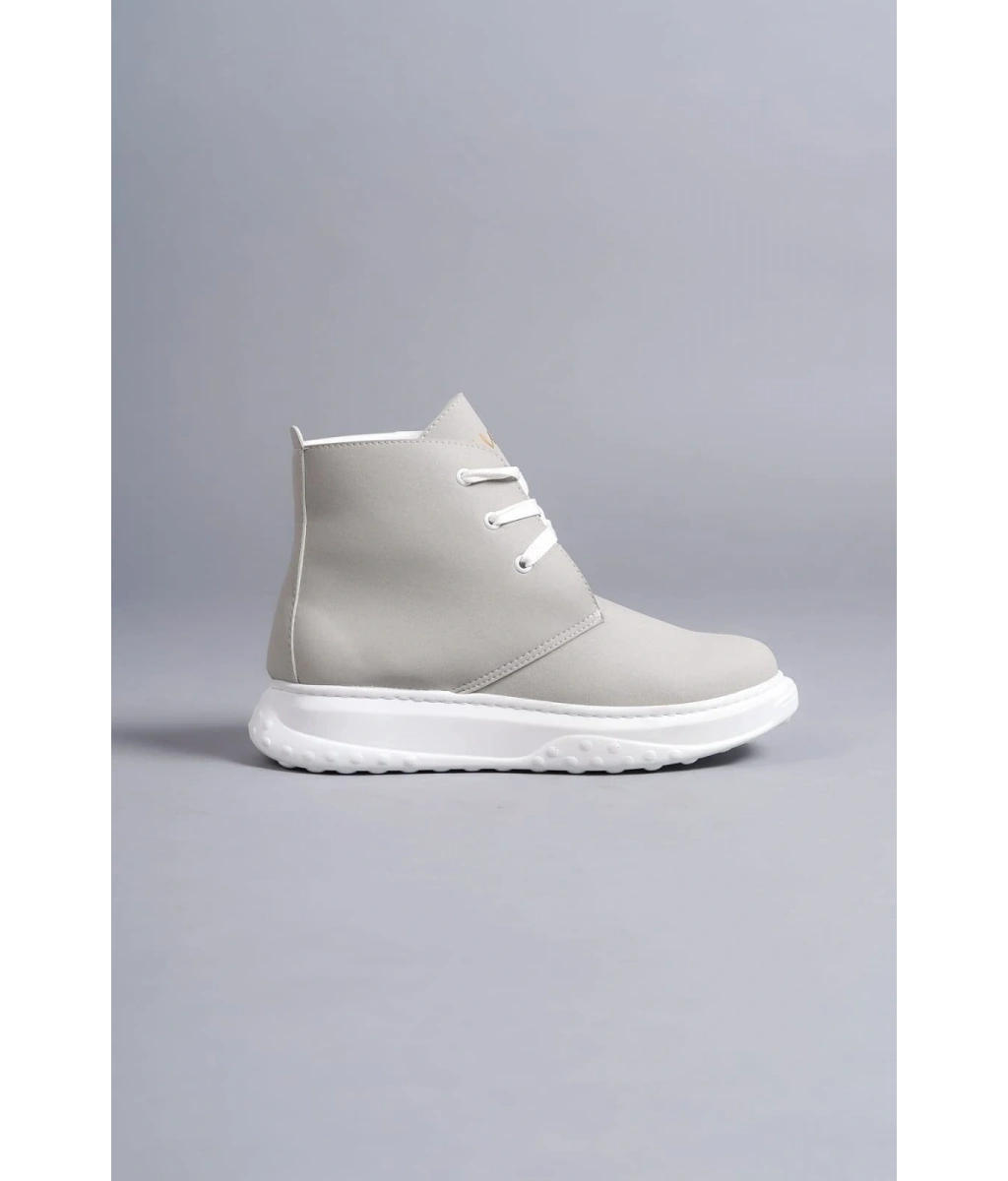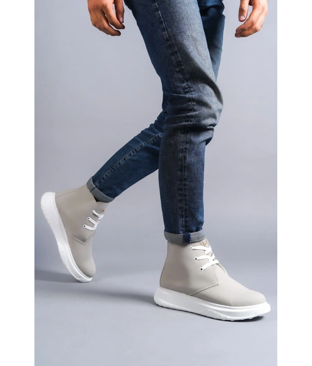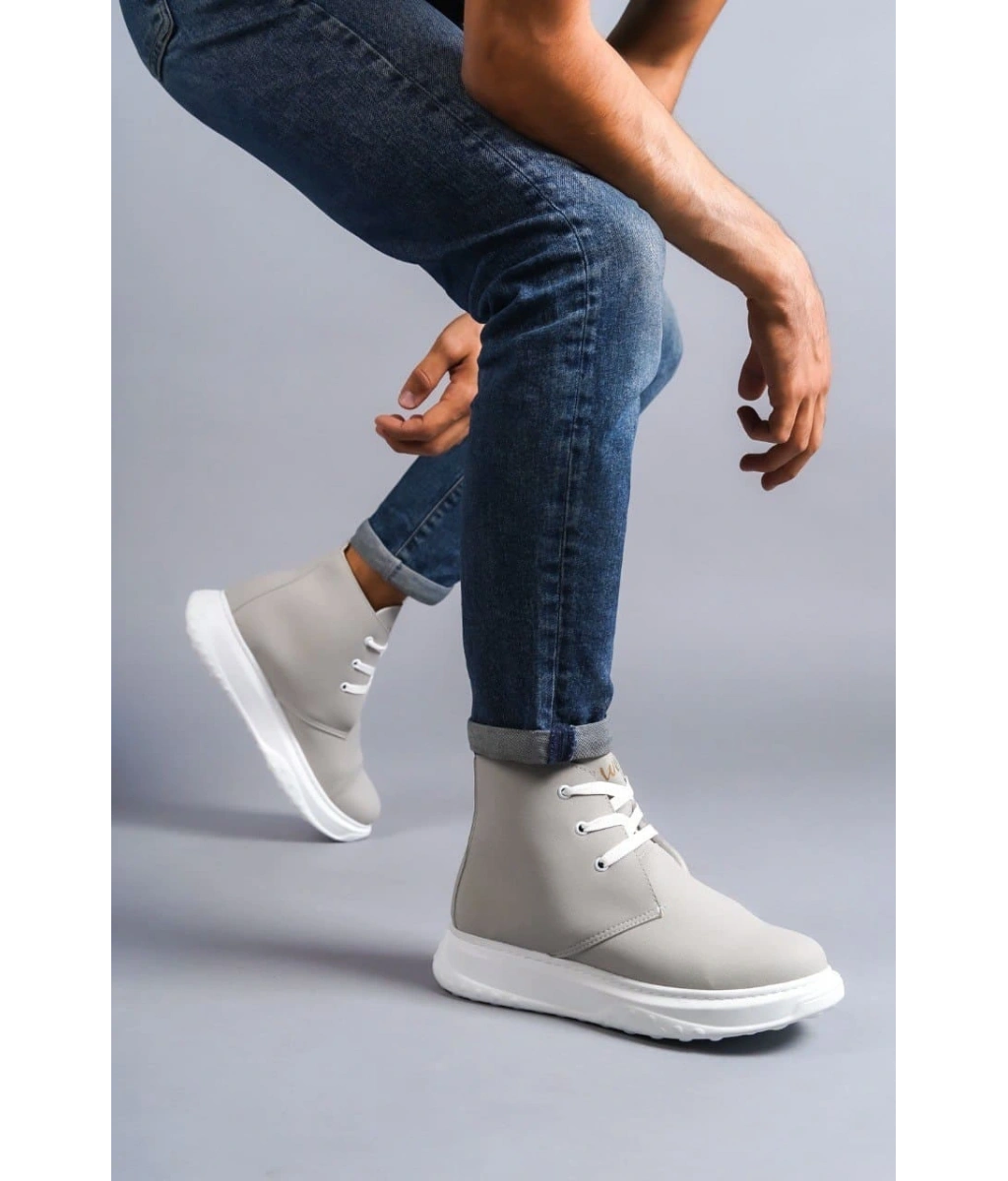 Shoecide Sb0401 Bağcıksız Rahat Yüksek Taban Krem Erkek Spor Yarım Bilek Bot