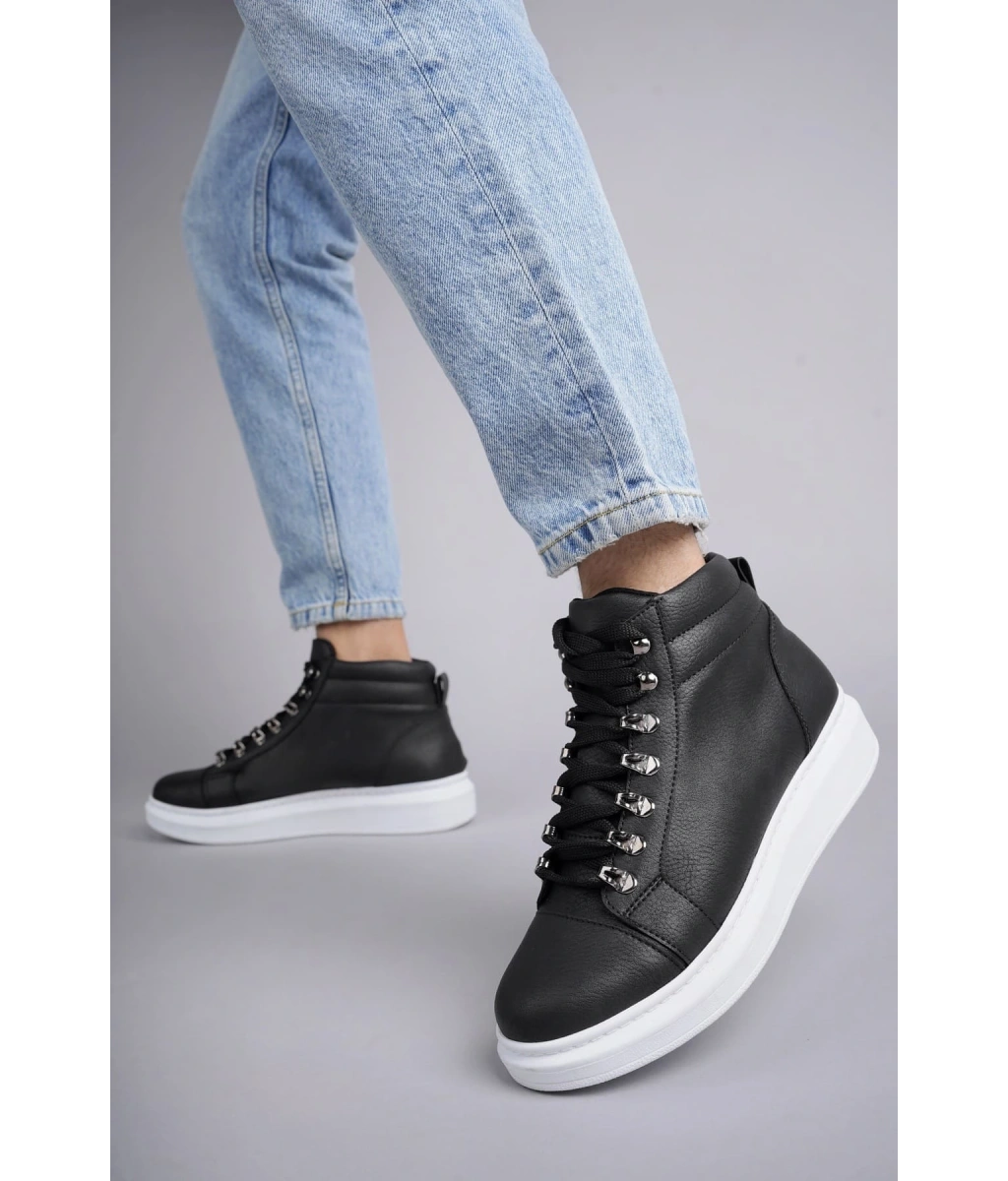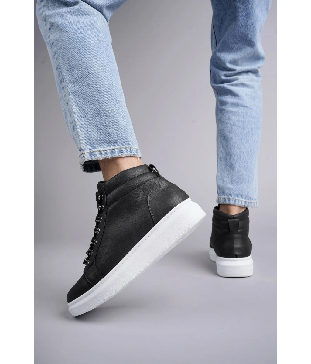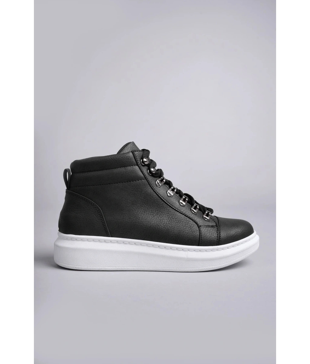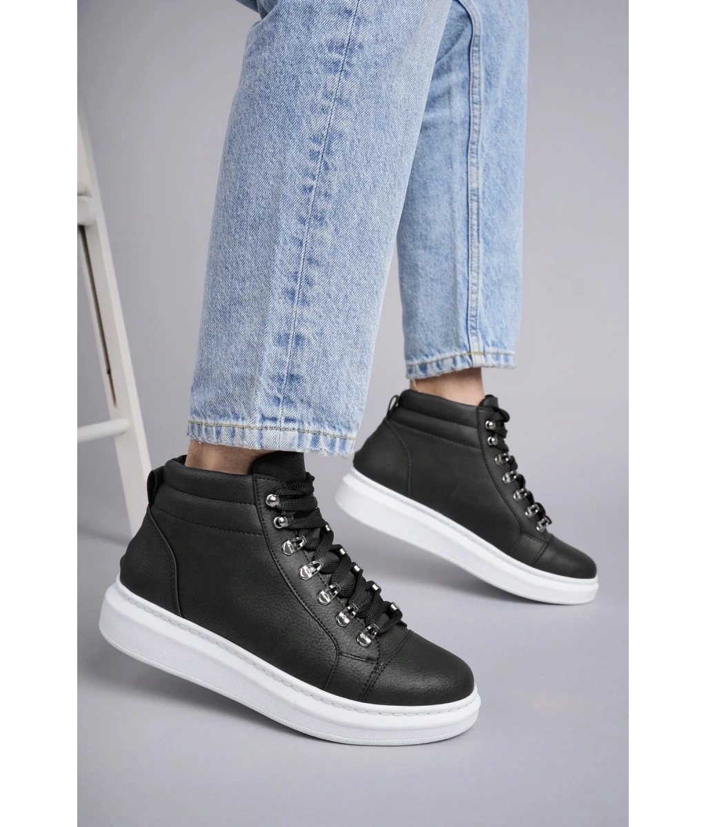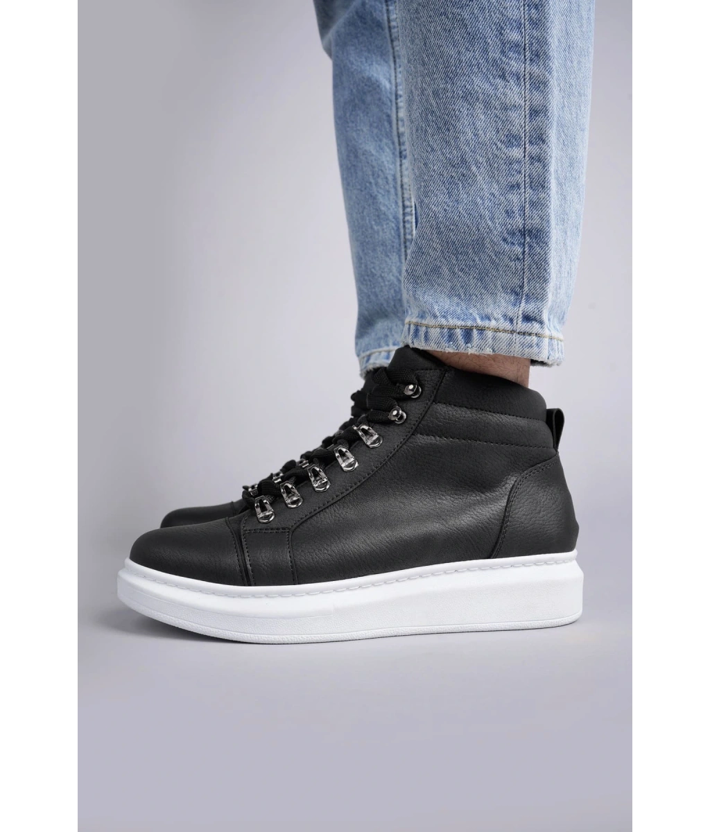 Shoecide Sb0713 Bağcıklı Yüksek Siyah Beyaz Taban Erkek Tarz Spor Bot