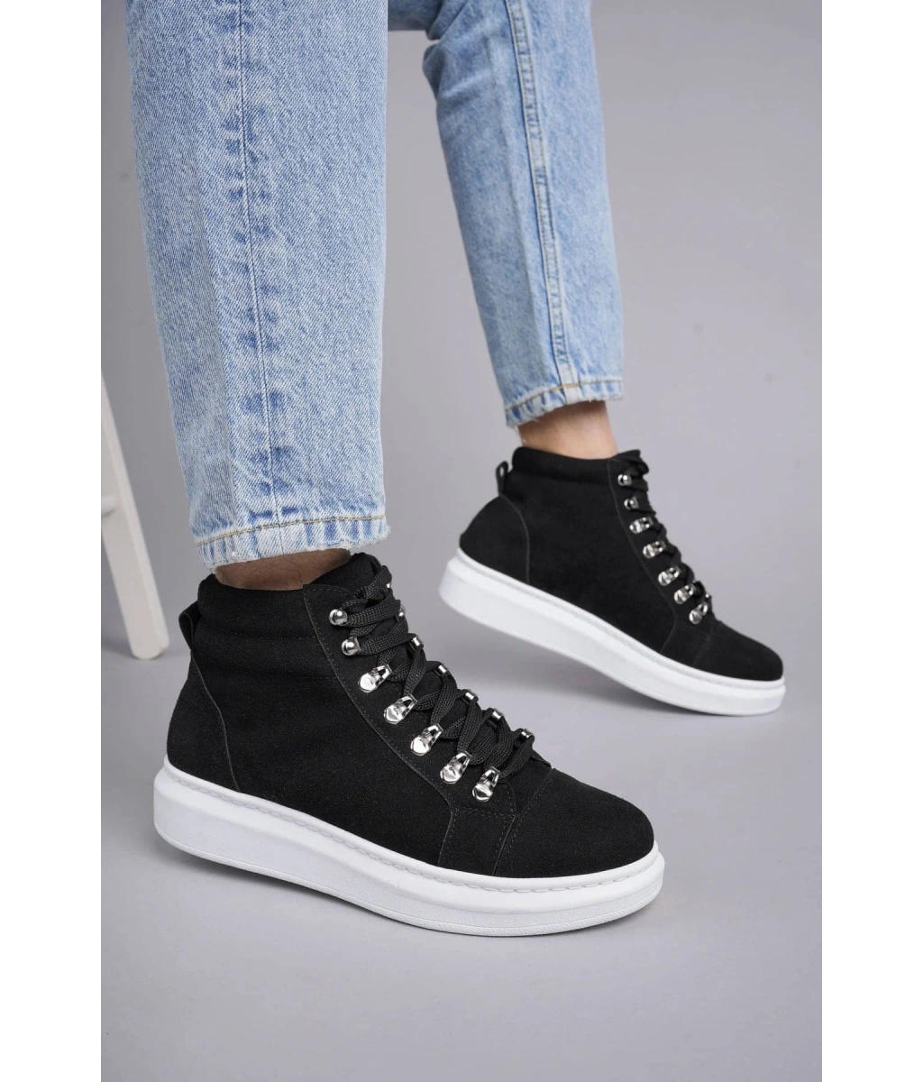 Shoecide Wg032 Siyah Bağcıklı Sneakers Yarım Bilek Bot