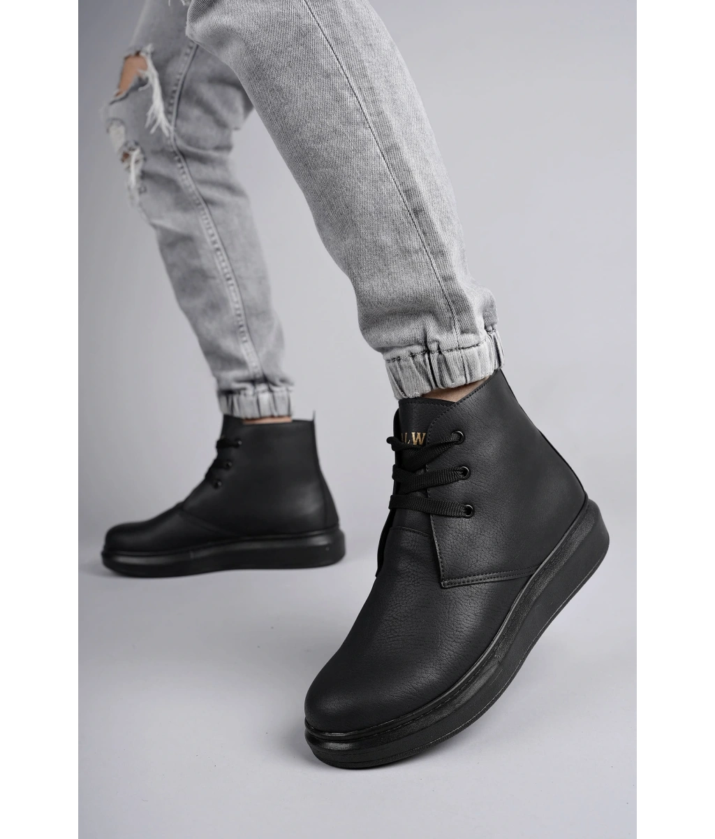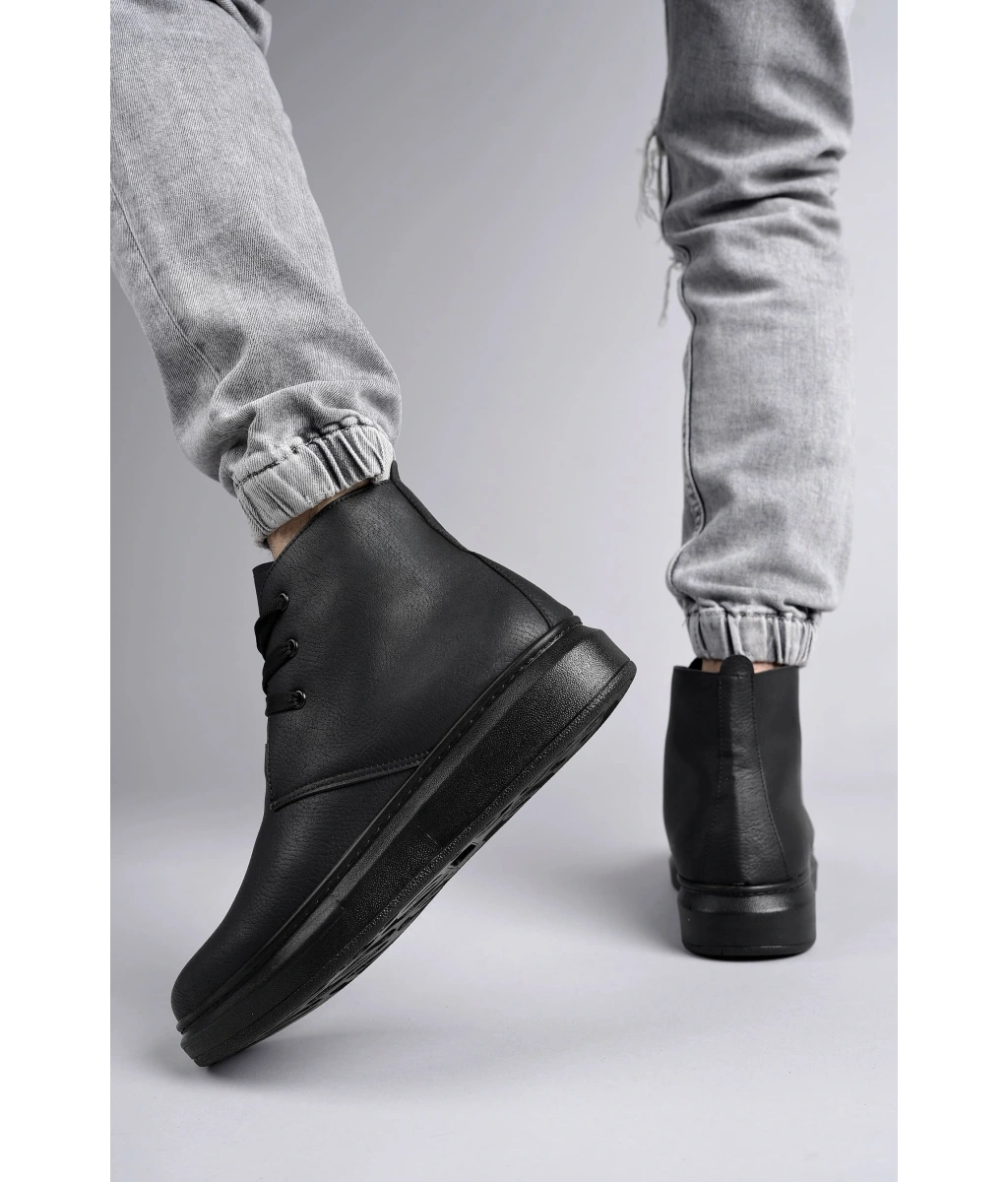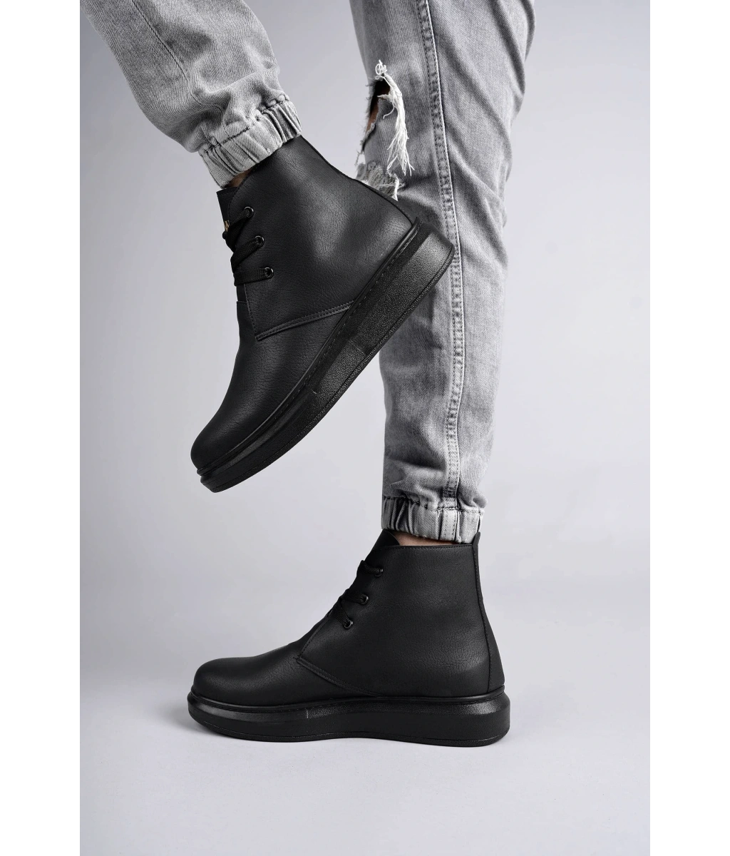 Shoecide Sb0713 Bağcıklı Yüksek Siyah Taban Erkek Tarz Spor Bot
