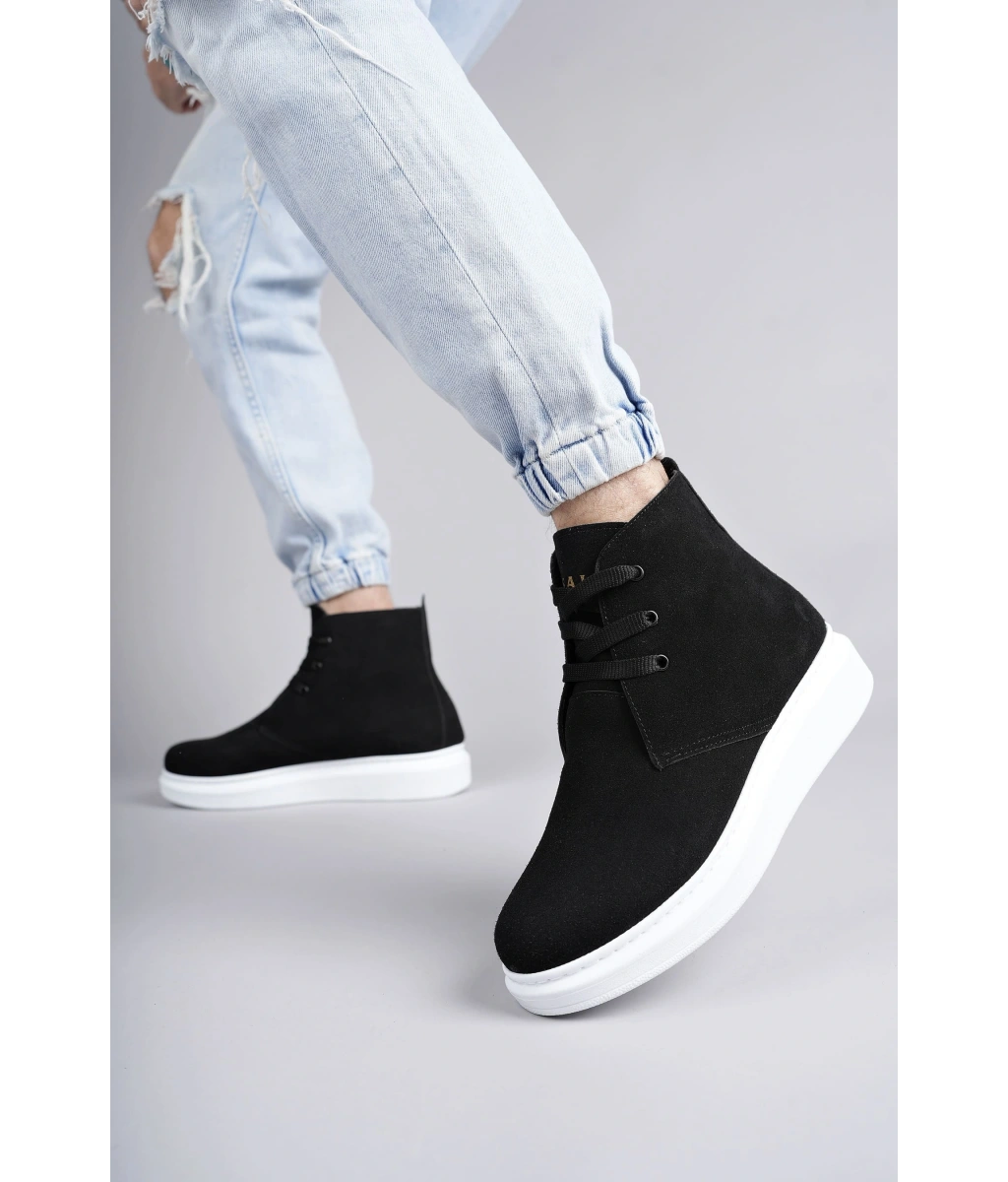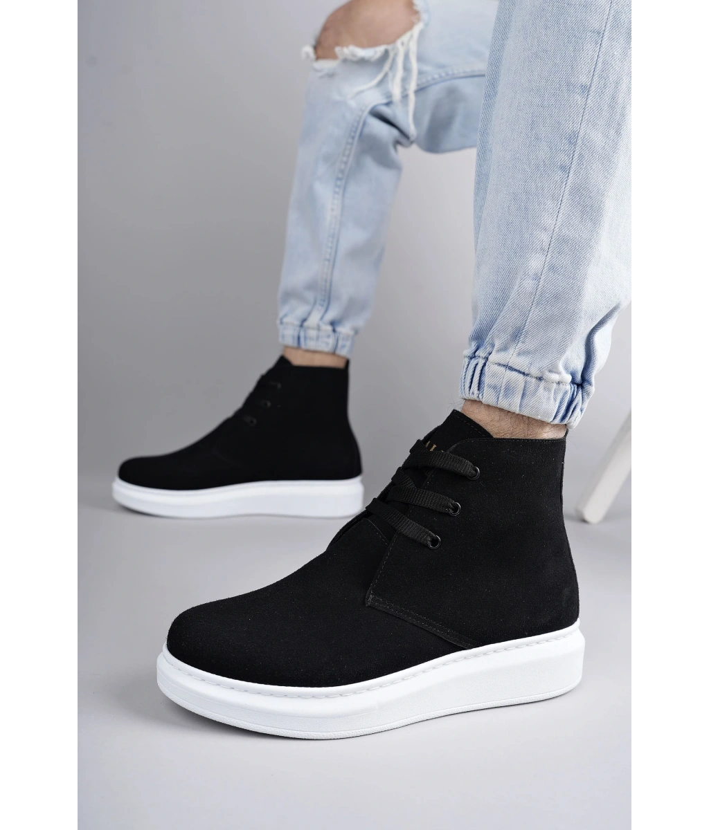 Shoecide Sb0713 Bağcıklı Yüksek Taba Süet Siyah Taban Erkek Tarz Spor Bot